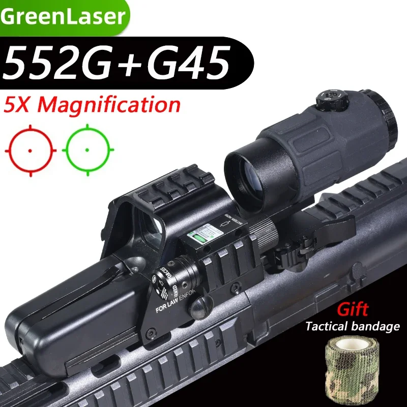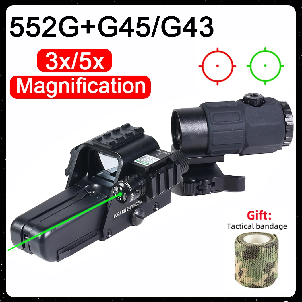Mira láser reflectante holográfica táctica de punto rojo y verde 552G con lupa 3X/5X G43/G45, Combo de caza, accesorios Airsoft