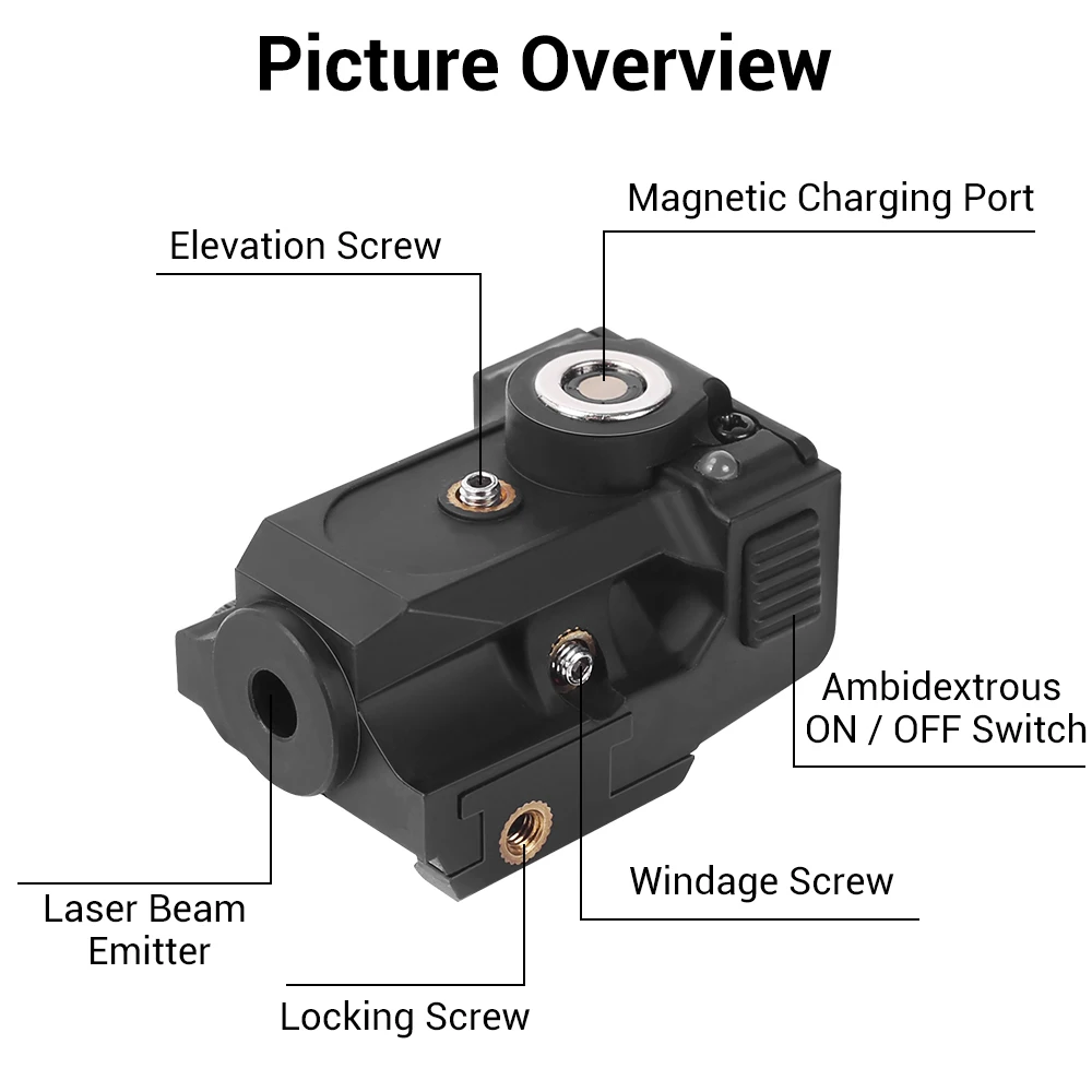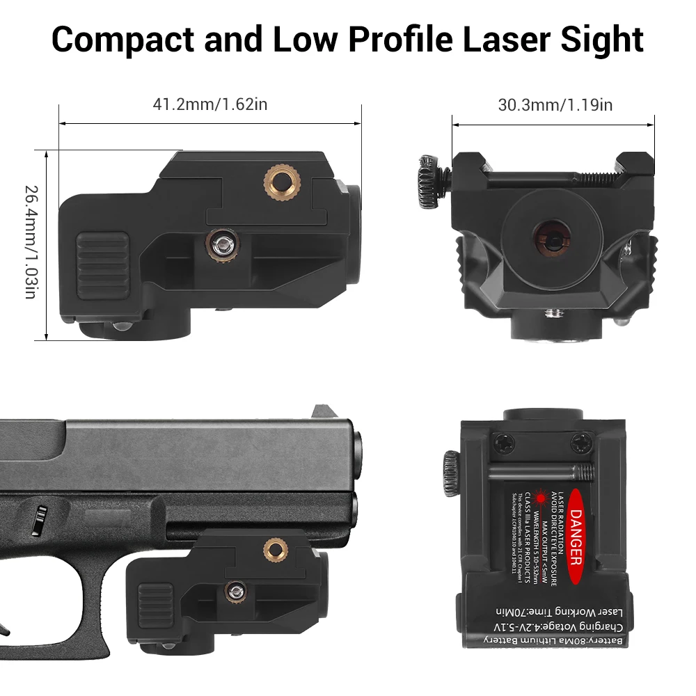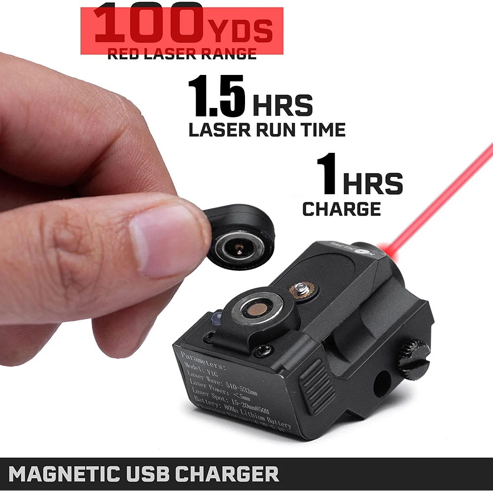 -La mira láser roja para pistola funciona con una batería recargable incorporada, que se carga con un cable magnético USB. El láser de haz rojo puede funcionar hasta 1,5 horas.