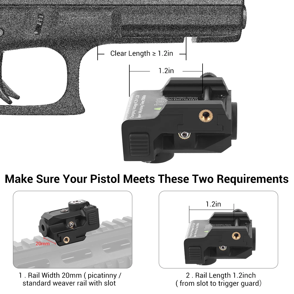 -La mira láser táctica de punto rojo para pistola se adapta a un riel Picatinny de 20mm, esta mira láser se puede montar en cualquier arma de fuego con un riel Picatinny o Weaver.