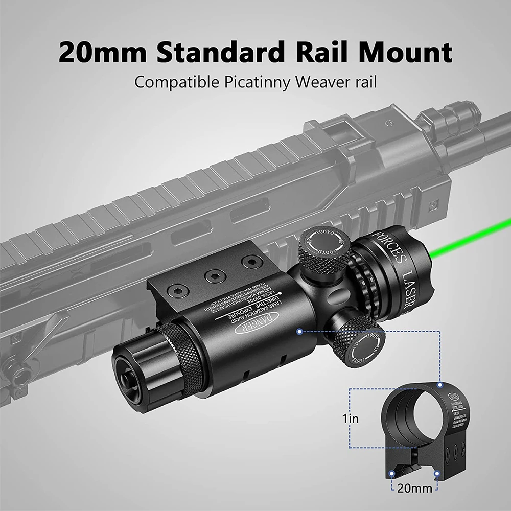 -El Sight Laser es perfecto para la caza, construido de aluminio resistente con un acabado anodizado duro que resiste los altos impactos y el impacto creado por rifles de calibre, es a prueba de lluvia y golpes.