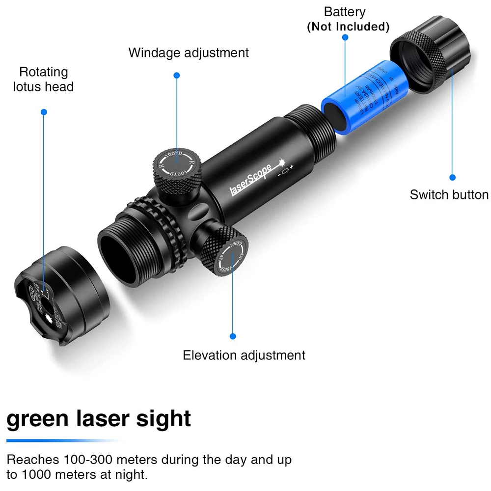 -Construido con láser verde CLASE IIIa (salida máxima ≤ 5MW) con una longitud de onda de 532nm.