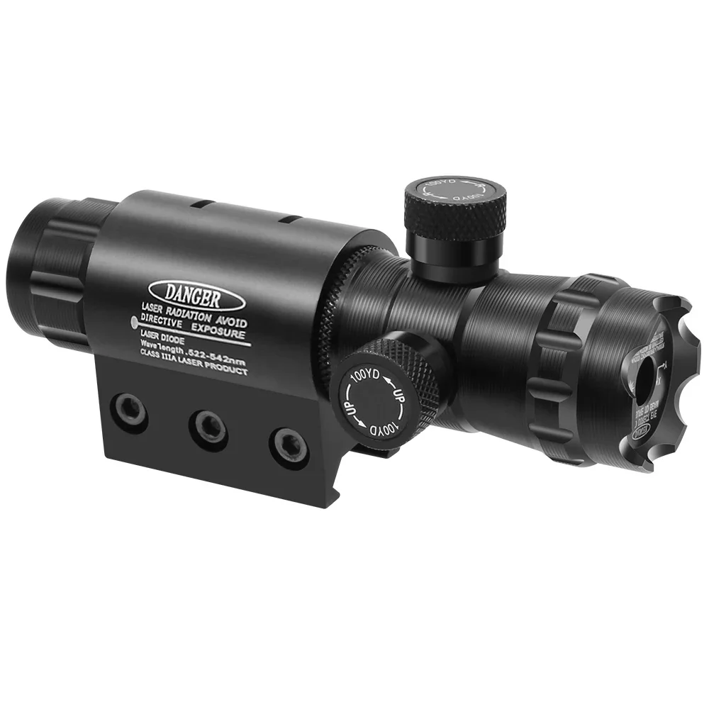 Nuestra mira láser verde con montura picatinny se puede instalar en un riel picatinny de 20 mm.Y también se puede instalar para hacer frente al adaptador de anillo de 1'' suministrado.