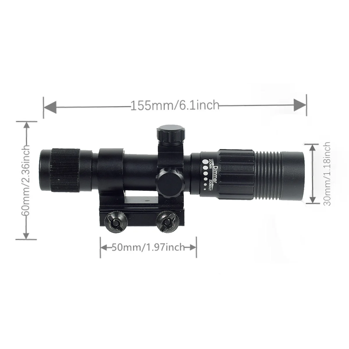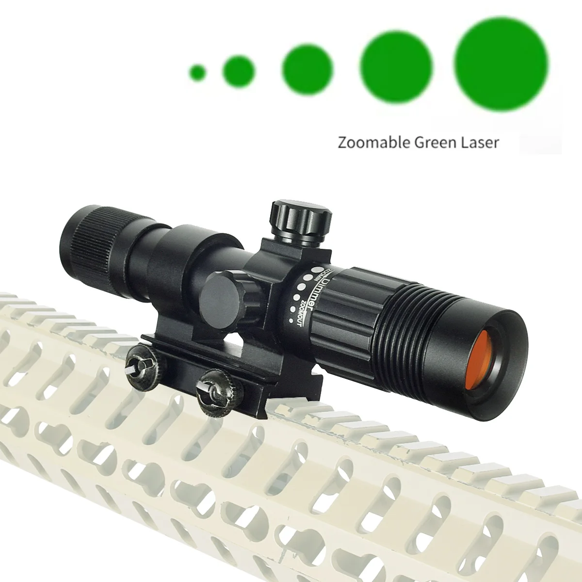 Mira láser verde táctica, haz ajustable de diámetro, linterna láser verde, iluminador de diseño, láser de caza con soporte de Base de 20mm
