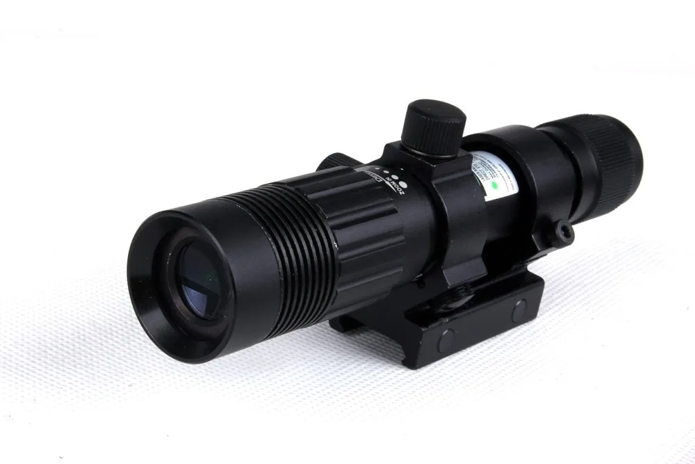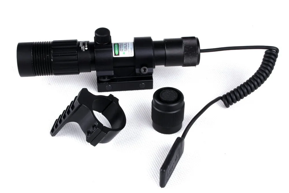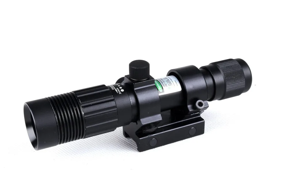 Acercar para usar como láser de orientación, alejar para usar una luz verde de largo alcance ( 200 yardas)