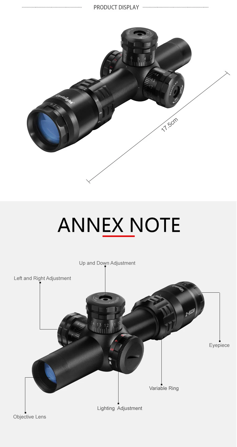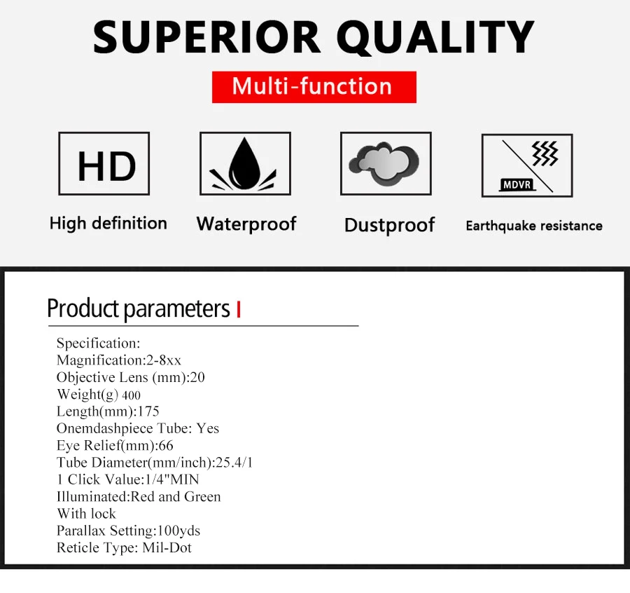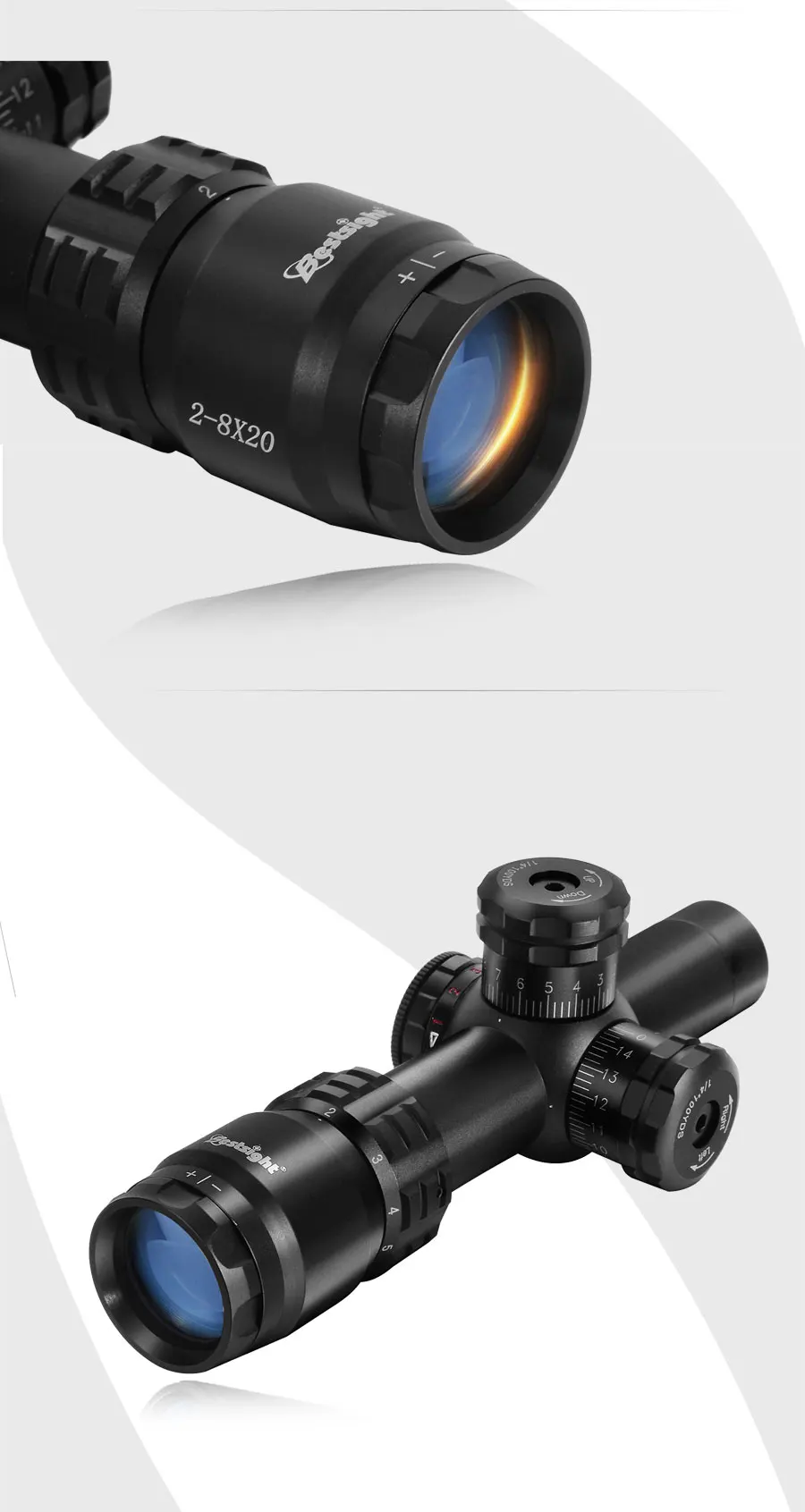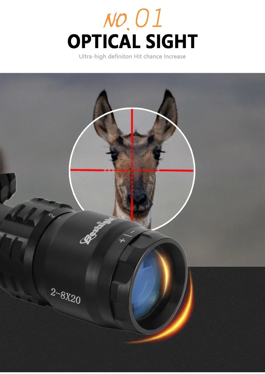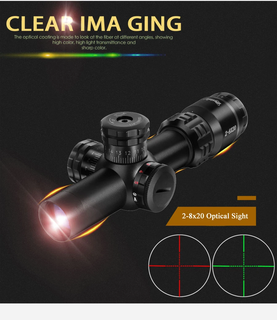 Mira óptica compacta 2-8x20, mira telescópica iluminada roja y verde para Rifle con bloqueo de ajuste, mira telescópica para caza