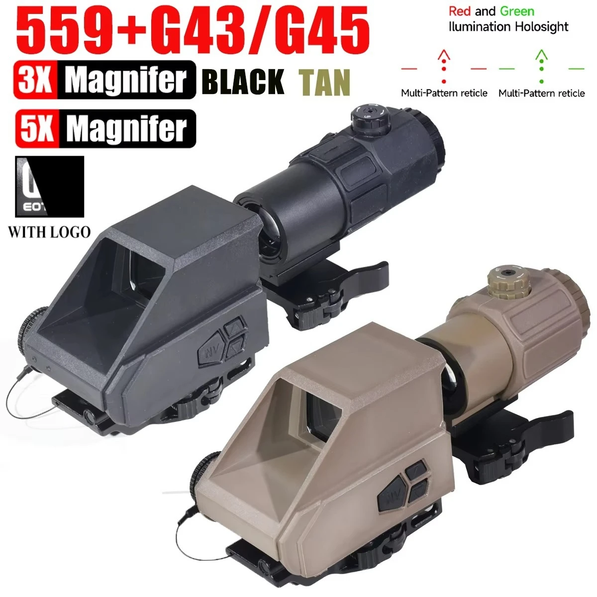 Mira óptica holográfica de punto rojo y verde 559, lupa G43 G45 5X, mira réflex táctica, colimador, accesorios de caza