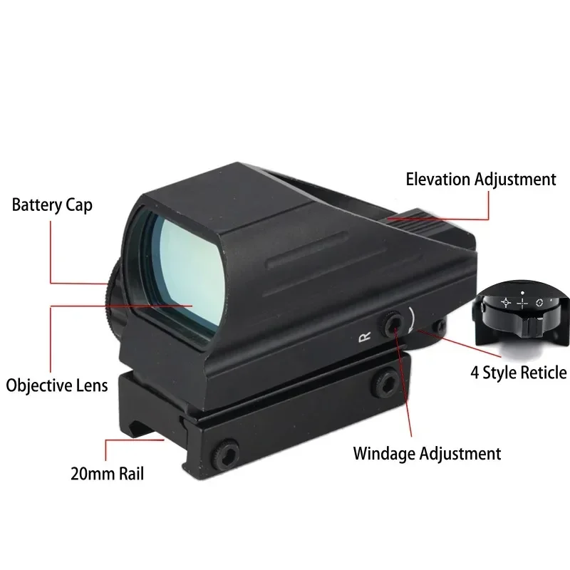 Mira óptica de punto rojo para caza, mira holográfica de reflejo, 4 retículas, colimador rojo/verde, accesorios Airsoft, 1x40, HD101