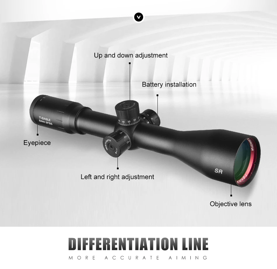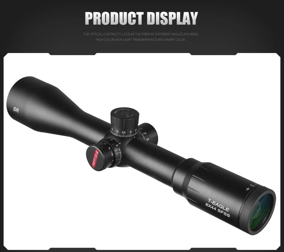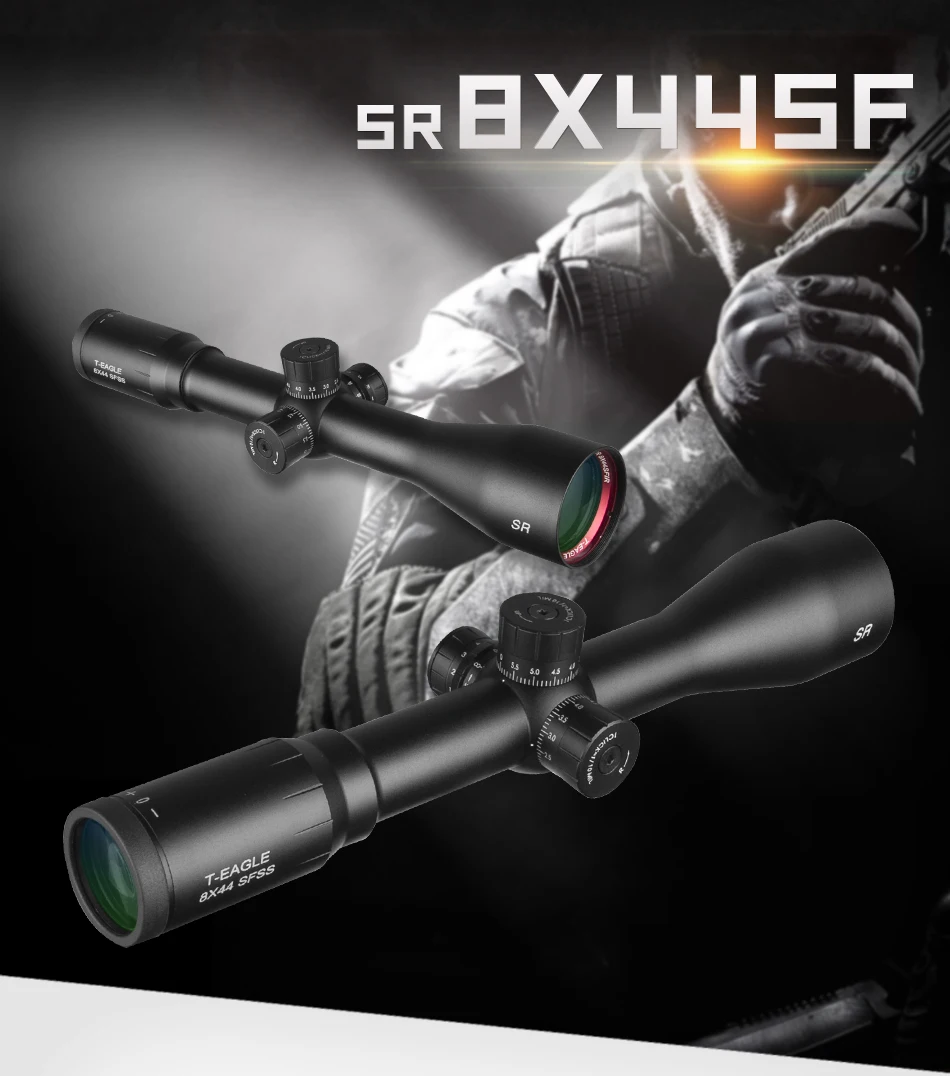Mira óptica T-Eagle SR 8X44 SFSS, retícula grabada de vidrio rojo iluminada con bloqueo de viento, reinicio de mira de Rifle táctica, nuevo