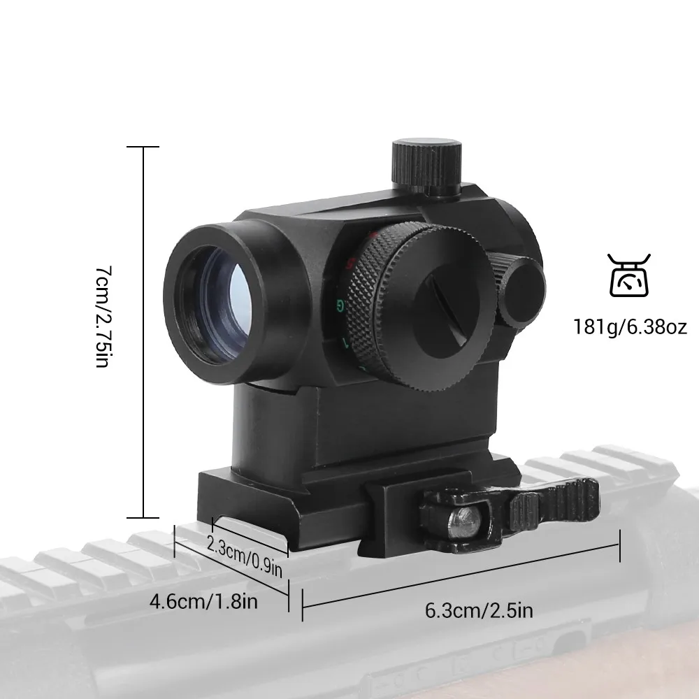 Mira de punto rojo de 1x22mm, 3 MOA, mira de punto rojo, mira óptica reflejada con soporte de elevador QD, mira de caza, accesorio Airsofts