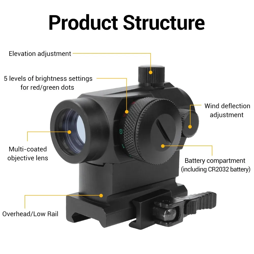 Gracias a los materiales de alta calidad y a los diseños estructurales innovadores, la configuración de brillo en cada nivel es más brillante que otras miras baratas con 5 configuraciones de brillo.Para que pueda ajustar fácilmente el punto rojo al mejor brillo y apuntar rápidamente al objetivo.