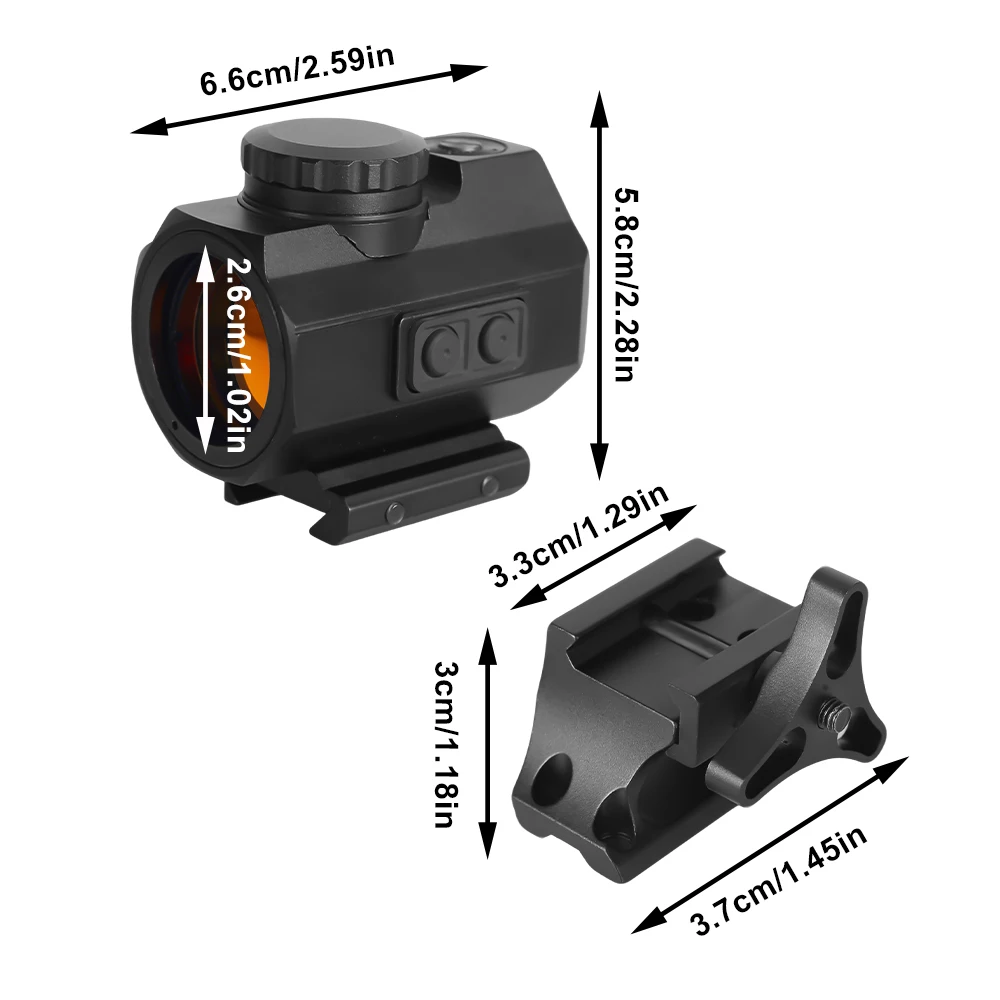 Esta mira de punto rojo presenta un diseño completamente sellado y lleno de nitrógeno con capacidad antivaho y resistencia al agua IPX7, lo que garantiza un funcionamiento estable incluso en condiciones climáticas adversas.Su potente resistencia sísmica de 1000G garantiza un rendimiento confiable en entornos extremos, ya sea que se caiga desde una altura o se somete a impactos graves, no afectará su uso normal.No importa dónde estés, esta mira puede ser tu compañera más confiable.