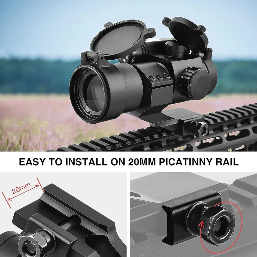 Compatible con rieles Picatinny de 20 mm/22 mm para un ajuste sólido y estable.Una llave Allen incluida permite ajustes sencillos de elevación y deriva, además de un tornillo de bloqueo para mayor estabilidad.