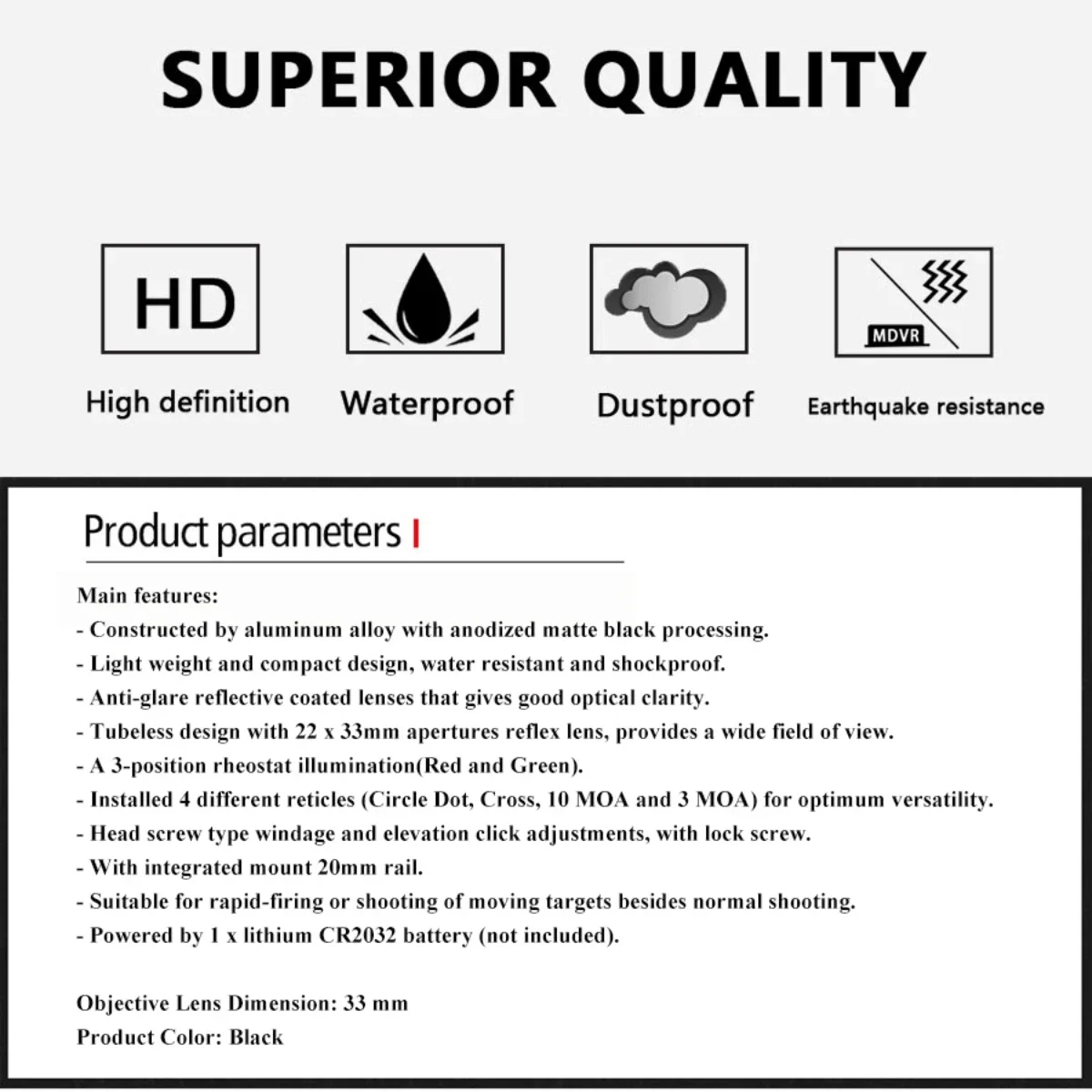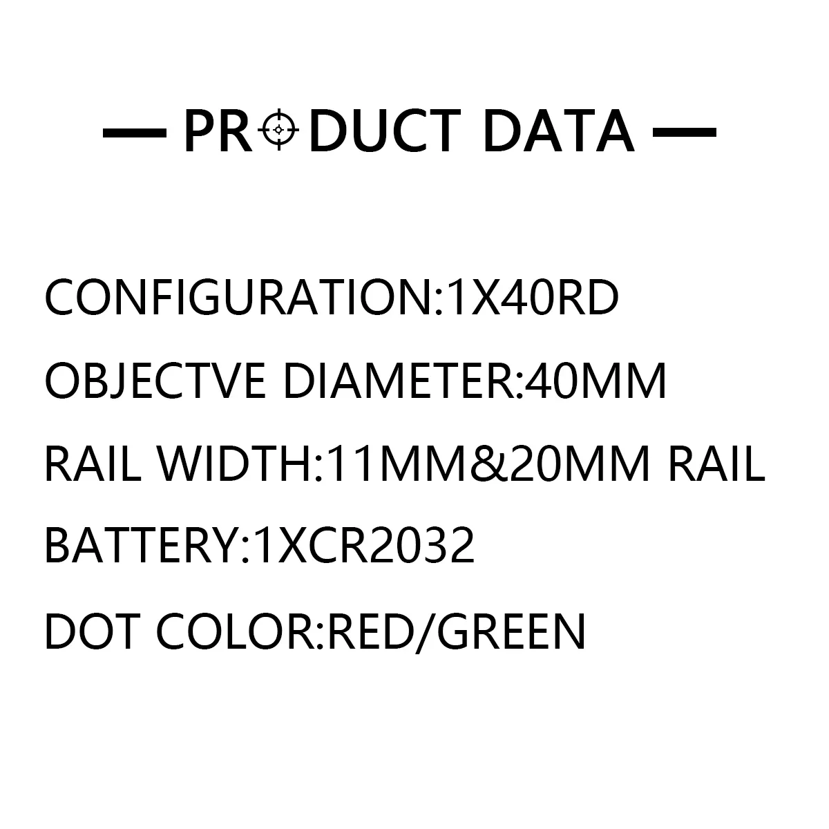 Mira de punto rojo 1X40, colección de caza, óptica, alcance holográfico reflejo, 4 retículas, colimador rojo/verde, accesorios Airsoft