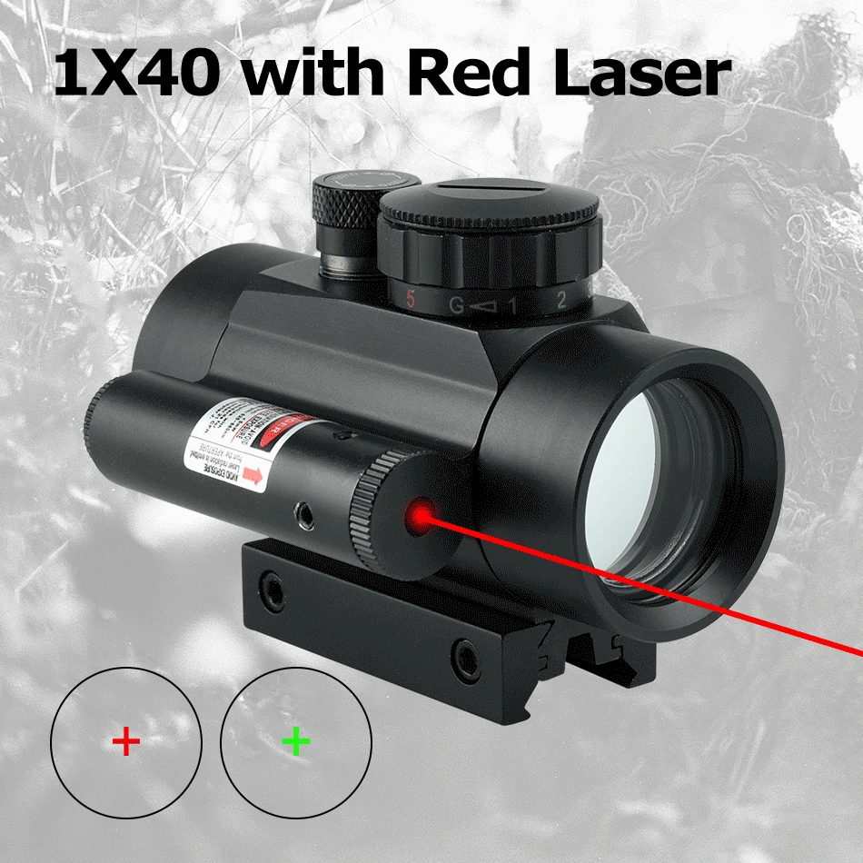 Mira telescópica táctica de punto rojo y reflejo de 1x40 con riel de montaje gratuito de 11 mm y 20 mm