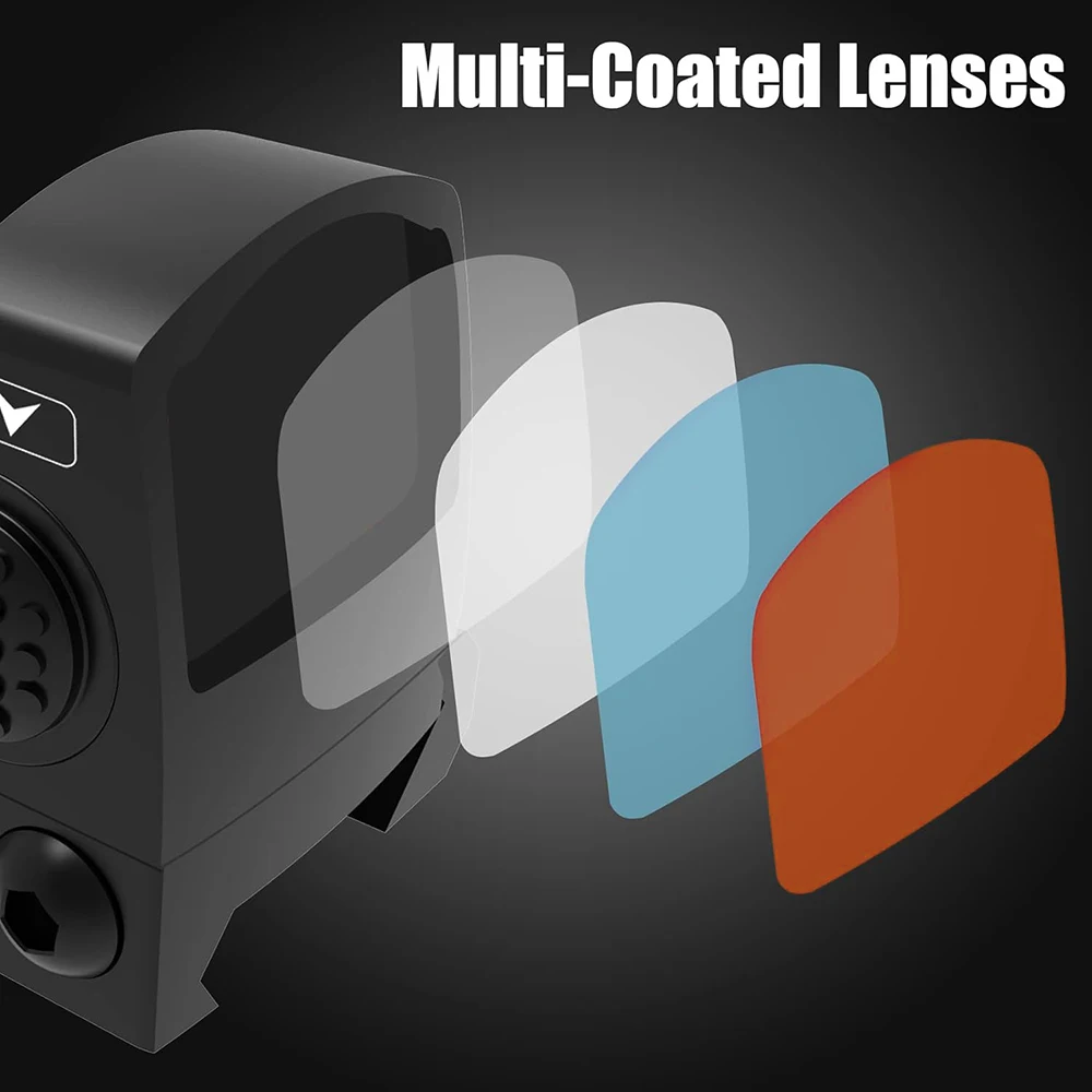 【Lente totalmente multicapa】La mira de punto rojo cuenta con óptica multicapa con revestimiento antirreflectante, lo que reduce la pérdida de luz y el deslumbramiento para proporcionar una imagen más brillante y de mayor contraste.