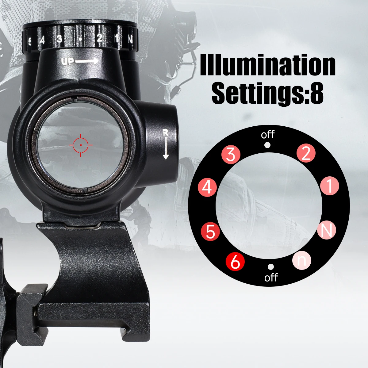 Características .Vista sellada .Alivio ocular infinito .Gran apertura .Curso de luz cónico .Recubrimientos de lentes avanzados ·Esfera de control de brillo .8 configuraciones de brillo .Los ajustadores totalmente protegidos mantienen cero ·Carcasa 7075 T6 forjada y anodizada dura