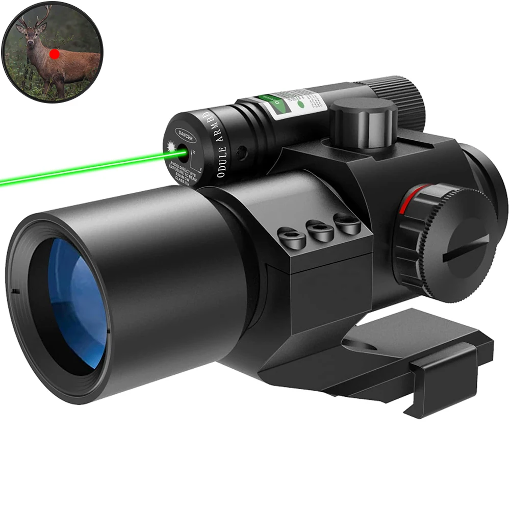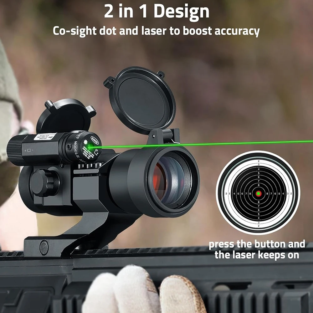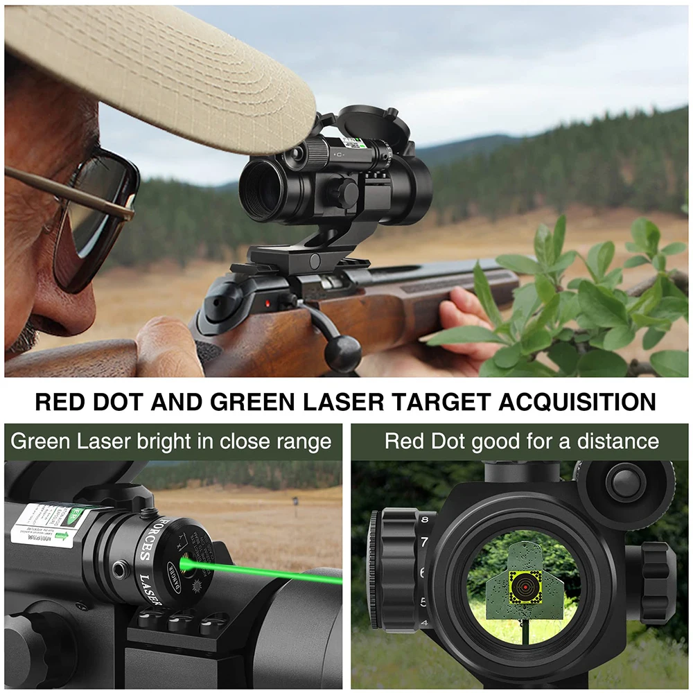 * Láser rojo/verde para objetivos de corto alcance y situaciones cercanas, para que pueda estar preparado para cualquier obstáculo.