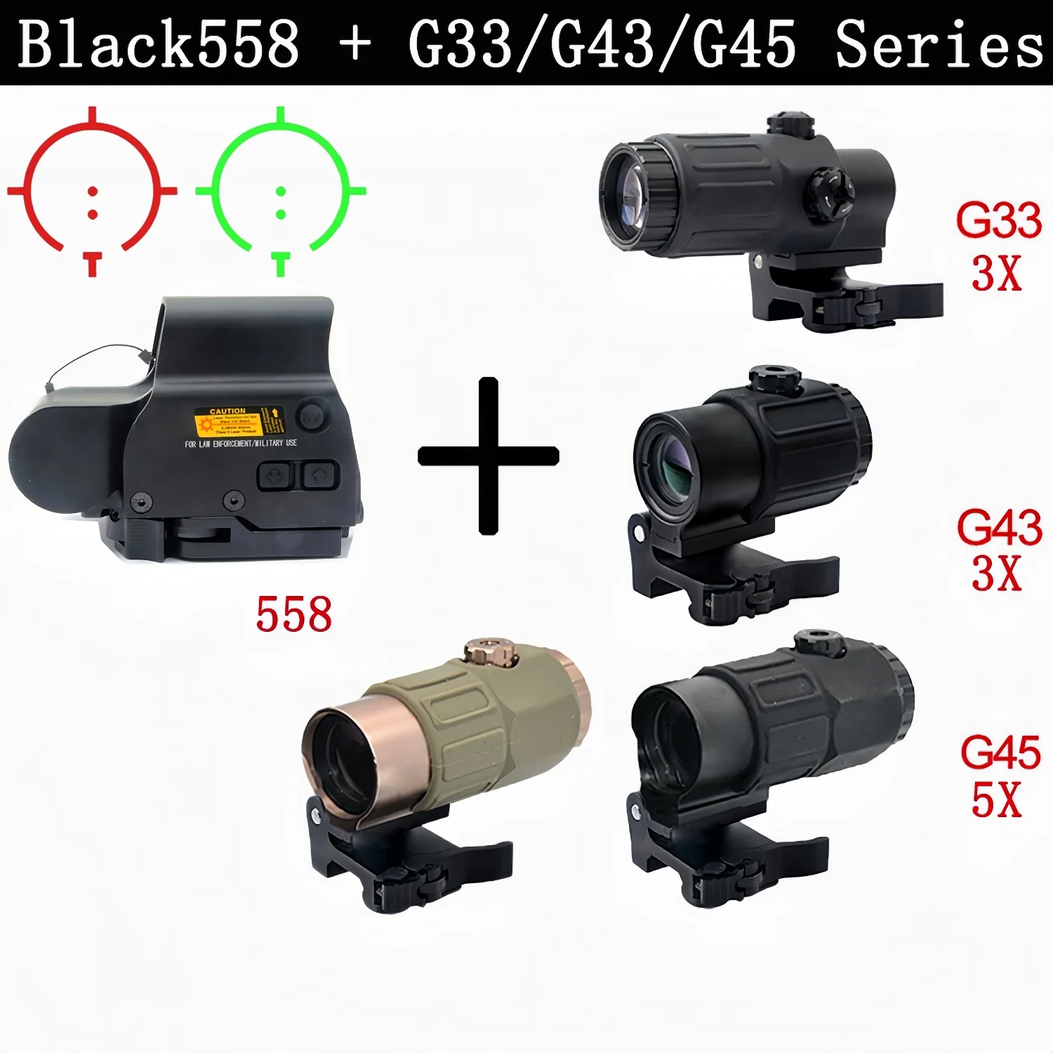 El punto rojo óptico holográfico 558 es una excelente opción para los profesionales.El 558 ofrece una verdadera toma de dos ojos para una adquisición rápida del objetivo, puntos rojos y verdes conmutables y una base de desconexión rápida elevada de 7 mm para un testimonio de la mira inferior de 1/3 de hierro.