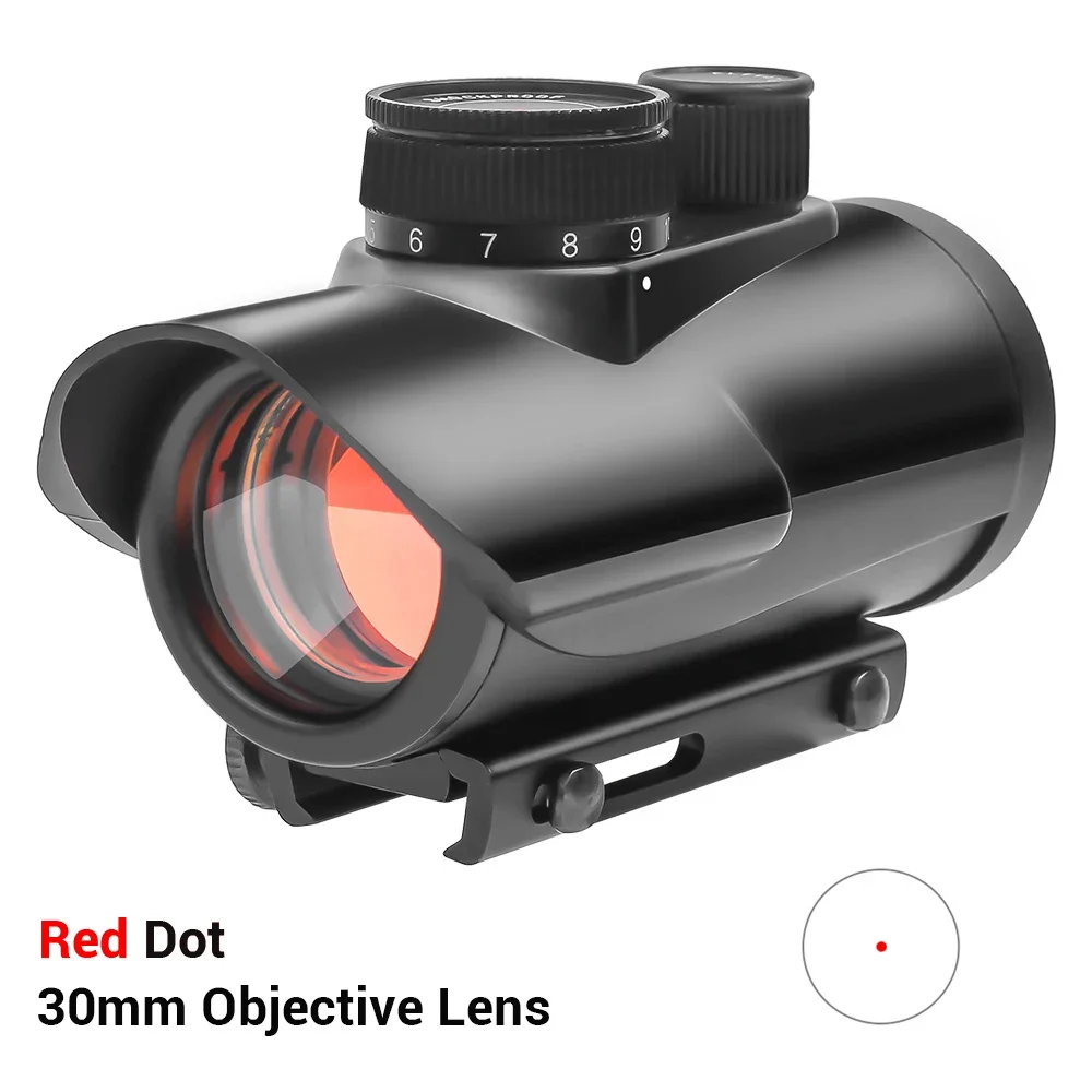Los visores de punto rojo con apertura de lente refleja de 30 mm brindan un amplio campo de visión de 19 m a 100 m, adecuados para disparos rápidos de objetivos en movimiento o normales.