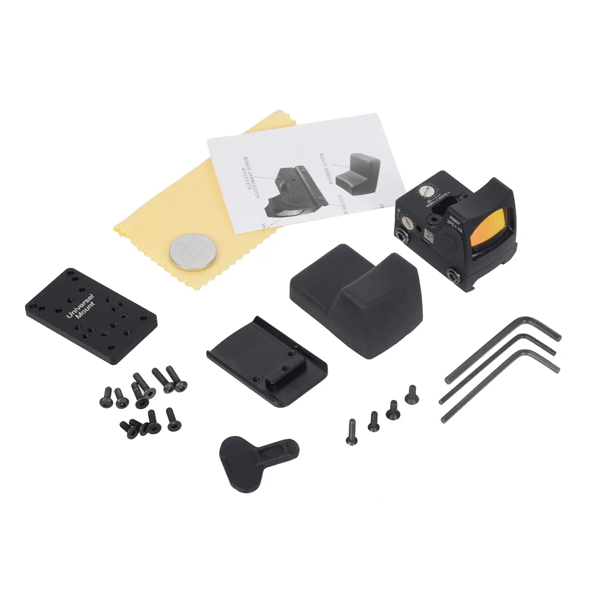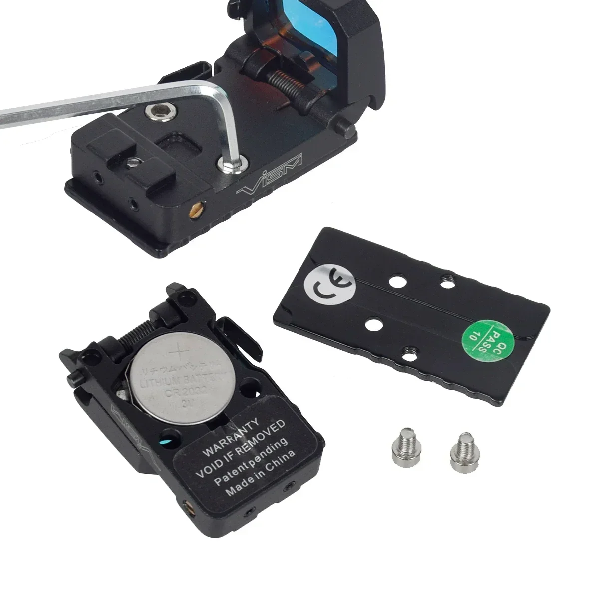 Lente refleja de punto rojo plegable (22 mm x 16 mm)Se pliega cuando no está en uso.Con solo presionar un botón, la lente FlipDot se voltea y se enciende automáticamente.Diámetro de la lente del objetivo: 22 mm X 16 mmAmpliación: 1XRetícula: punto rojoTamaño del punto: 3 MOALongitud: 2,0 pulgadasAncho: 1,2 pulgadasAltura: 1,1 pulgadasPeso: 1,0 oz (sin plato)Batería: 1 * batería CR2032 (no incluida)SOPORTES:Se adapta a pistolas y diapositivas GLK MOS que han sido mecanizadas para aceptar miras de punto rojo R-ScopeENCENDIDO:El sistema de lentes abatibles se despliega a la posición ON con solo presionar un botónAPAGADO:Apague la óptica simplemente doblando la lente hacia abajo hasta que se bloquee en su lugar.