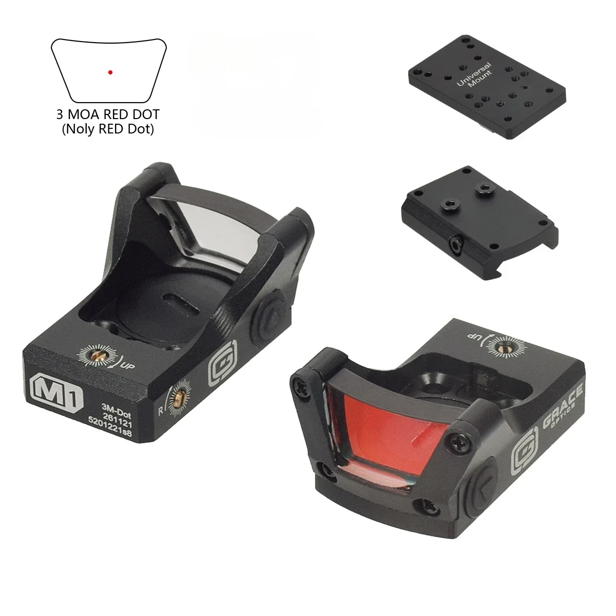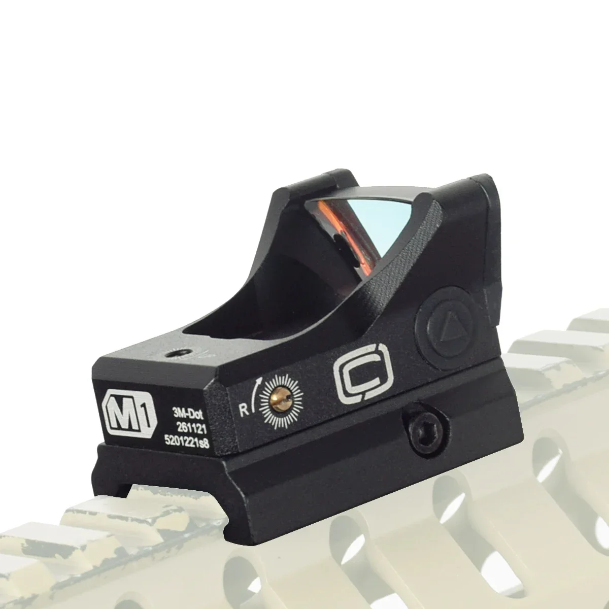 Este Optics M1 es una mira refleja de emisor abierto no ampliada disponible con puntos de 3 MOA de opciones de color rojo y verde.El nivel de brillo se selecciona mediante los dos botones de goma ubicados a cada lado de la carcasa.La mira funciona con una sola batería CR1632.El acceso al compartimiento de la batería es desde la parte superior de la carcasa, lo que permitirá cambiar la batería sin sacar la mira de las armas de fuego.El viento y la elevación son ajustables dentro de un rango de 50 MOA.Pesa de una onza y tiene las siguientes dimensiones: largo – 1,6′′; ancho – 1,3′′; altura –.8′′, tamaño de la lente – 24 mm.