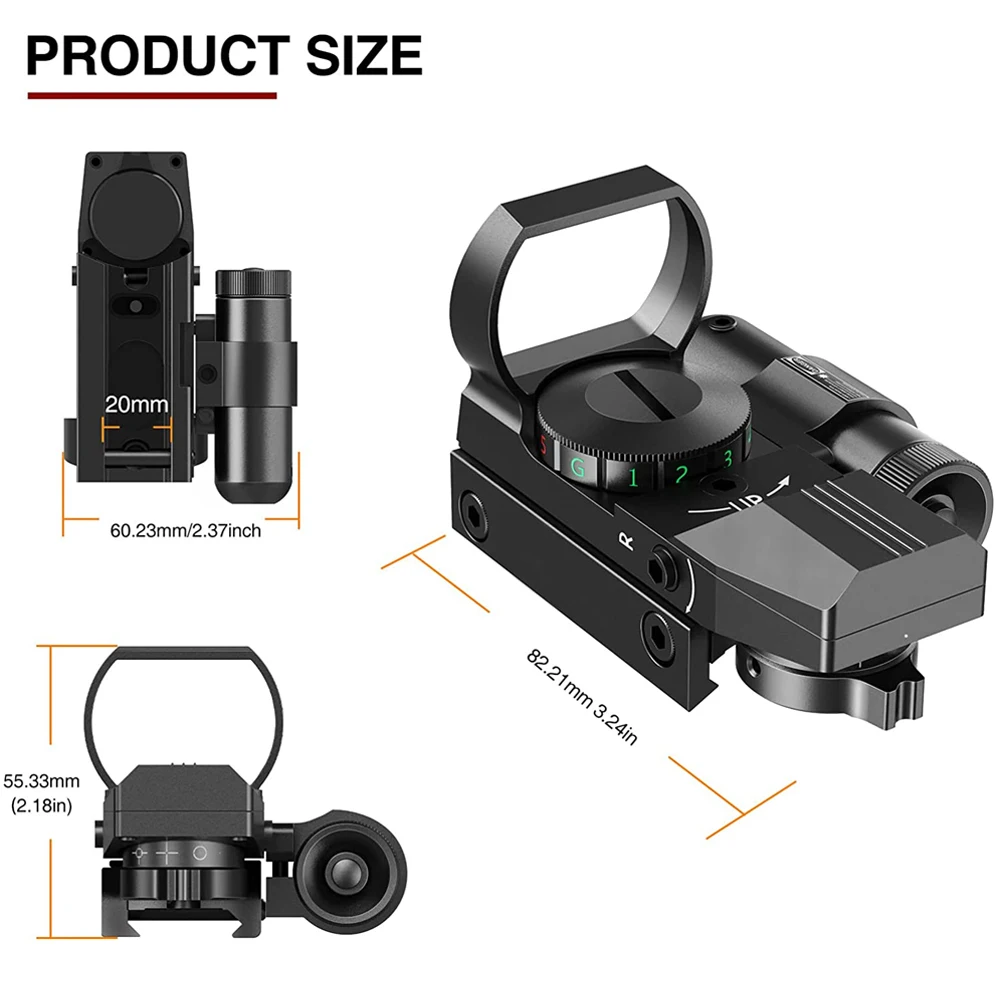 Doble iluminación roja y verde:La mira de punto rojo con 4 formas de retícula y 5 configuraciones de brillo ofrece varias opciones en diferentes ocasiones, como un día soleado o nublado.