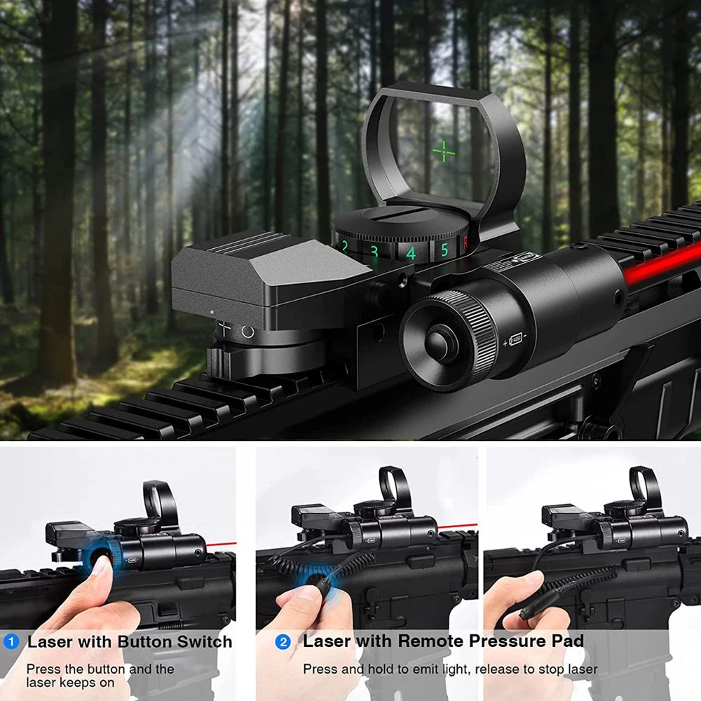 Mirilla reflectante de punto rojo y verde de 1x22x33mm con láser rojo y verde, vista óptica de caza de retícula para riel de 20mm, 5 ajustes de brillo