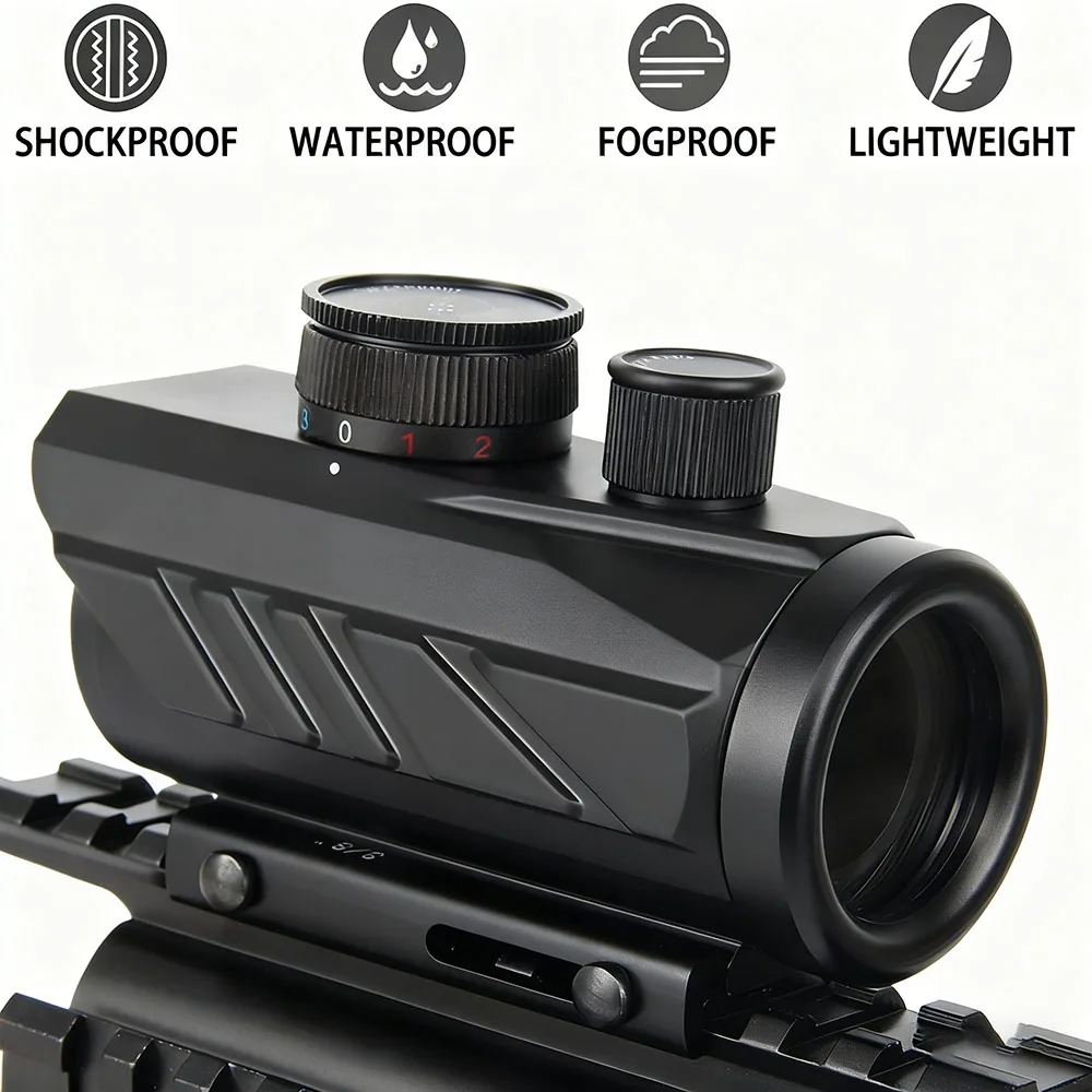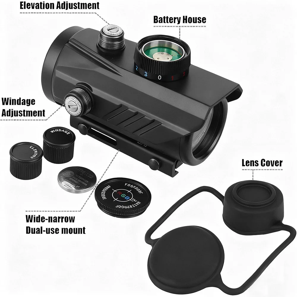La lente objetivo de 1x30 mm proporciona un amplio campo de visión de ±30 MOA y 1/2 MOA por clic garantiza una puntería precisa y rápida al objetivo, adecuada para entornos de disparo de corto alcance y de disparo rápido.