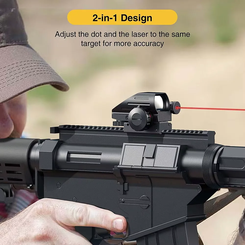 Lo que distingue a nuestra mira de punto rojo es su diseño especial 2 en 1.Está construida con un láser de mira roja, una mira refleja de doble iluminación con cuatro tipos de retículas y un ajuste de brillo continuo, esta mira refleja ofrece varias opciones para satisfacer diferentes ocasiones.Ya sea que esté cazando, practicando en el campo o respondiendo a una situación táctica, esta mira de punto rojo ofrece las opciones que necesita.