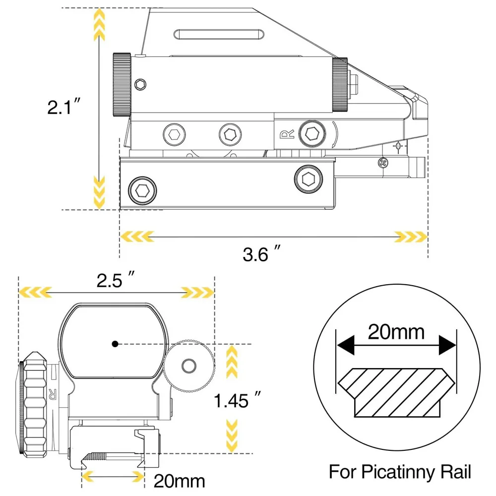 ¡La instalación también es muy sencilla!Este visor reflejo de punto láser se adapta a rieles Weaver y Picatinny estándar de 11 mm o 20 mm, lo que facilita su fijación a su arma de fuego.Y con su diseño elegante y compacto, no agregará volumen ni peso innecesarios a sus armas.