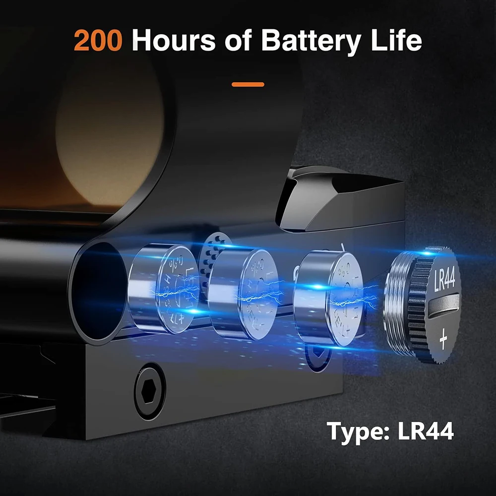 La mira de retícula con base de montaje estándar de 11 mm se instala cómodamente en el riel Picatinny, utilizando las llaves Allen incluidas.El compartimento compacto de la batería facilita el reemplazo de la batería.