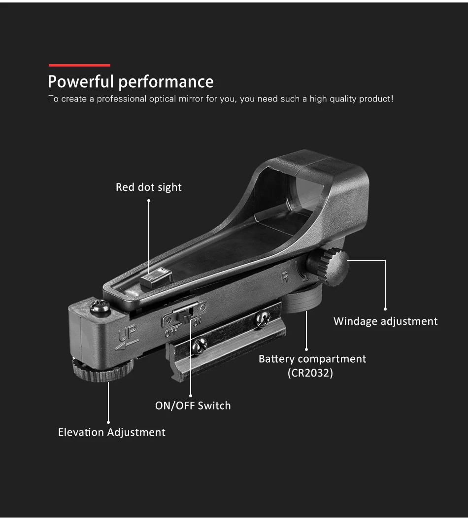 Mira réflex táctica de plástico, mira telescópica de punto rojo, visión amplia, pistola de aire de 20mm, soportes de riel Weaver, mira telescópica Ak 47 para caza