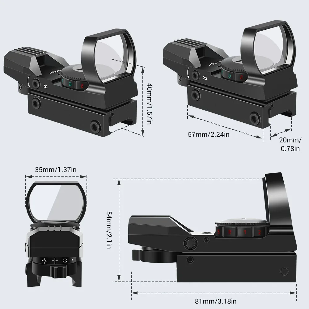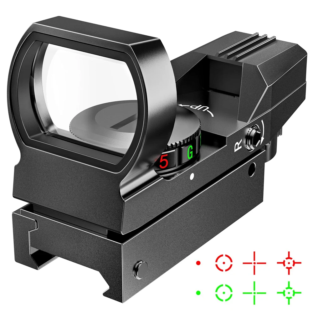 Mira de punto roja táctica de 22x33, mira reflejada ajustable con 4 retículas, mira de pistola de punto rojo y verde para rieles de 20mm/11mm, 1x33, 1