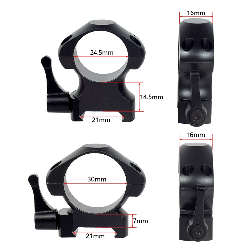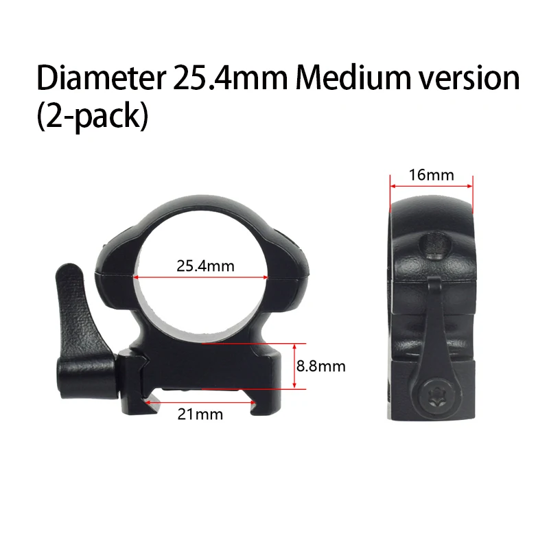 Mira táctica de acero de 2 uds., anillos de 25,4/30mm de diámetro bajo/medio/alto, perfil de liberación rápida, riel de 20mm, soporte de anillo para escopios de caza
