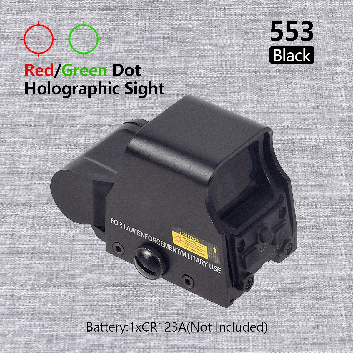 Fácil de configurar, se adapta a cualquier riel de 20 mm.Ajuste de elevación y palanca en el lateral de la mira.Material a prueba de golpes y intemperieColor: negroBatería: 1xCR123A (no incluida)Peso: 300 gR: ajuste de brillo (hacia arriba)B: ajuste de brillo (hacia abajo)