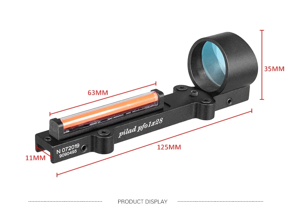 Mira Táctica de Punto Rojo 1x28 con Fibra Óptica Roja y Verde, Ligera, para Caza, Compatible con Riel de Escopeta