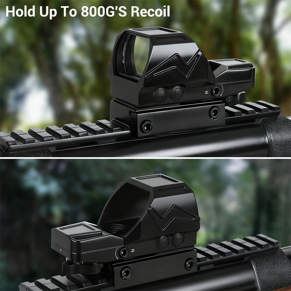 Esta mira de punto rojo está fabricada con aluminio de grado aeronáutico, capaz de soportar fuerzas de retroceso de hasta 800G.Su construcción robusta garantiza una durabilidad duradera incluso en caso de uso prolongado.