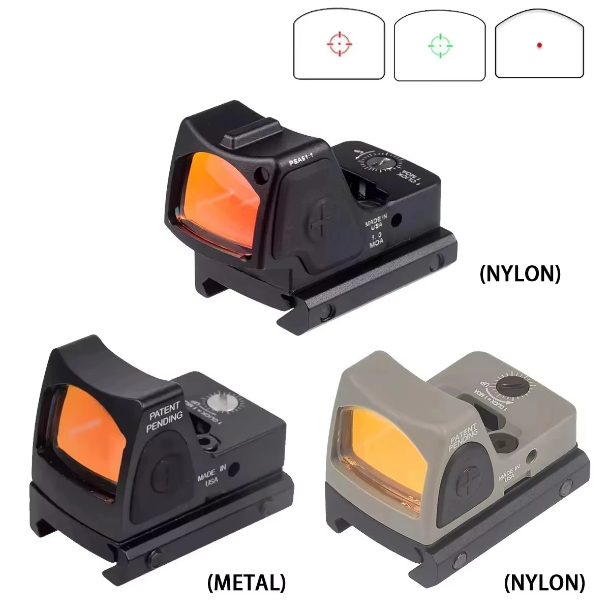 Ampliación: 1xCompensador de caída de bala: NoLongitud (pulg.) : 45 mmFuente de iluminación LEDPatrón de retícula: punto de 3,25 MOAColor del retícula diurna: rojoColor del retícula nocturno: rojoConcepto de puntería Bindon: NoAjuste a 100 yardas (clices/in): 1,0Material de la carcasa: Aluminio forjadoNota: Baterías 1 batería de litio xCR20323V