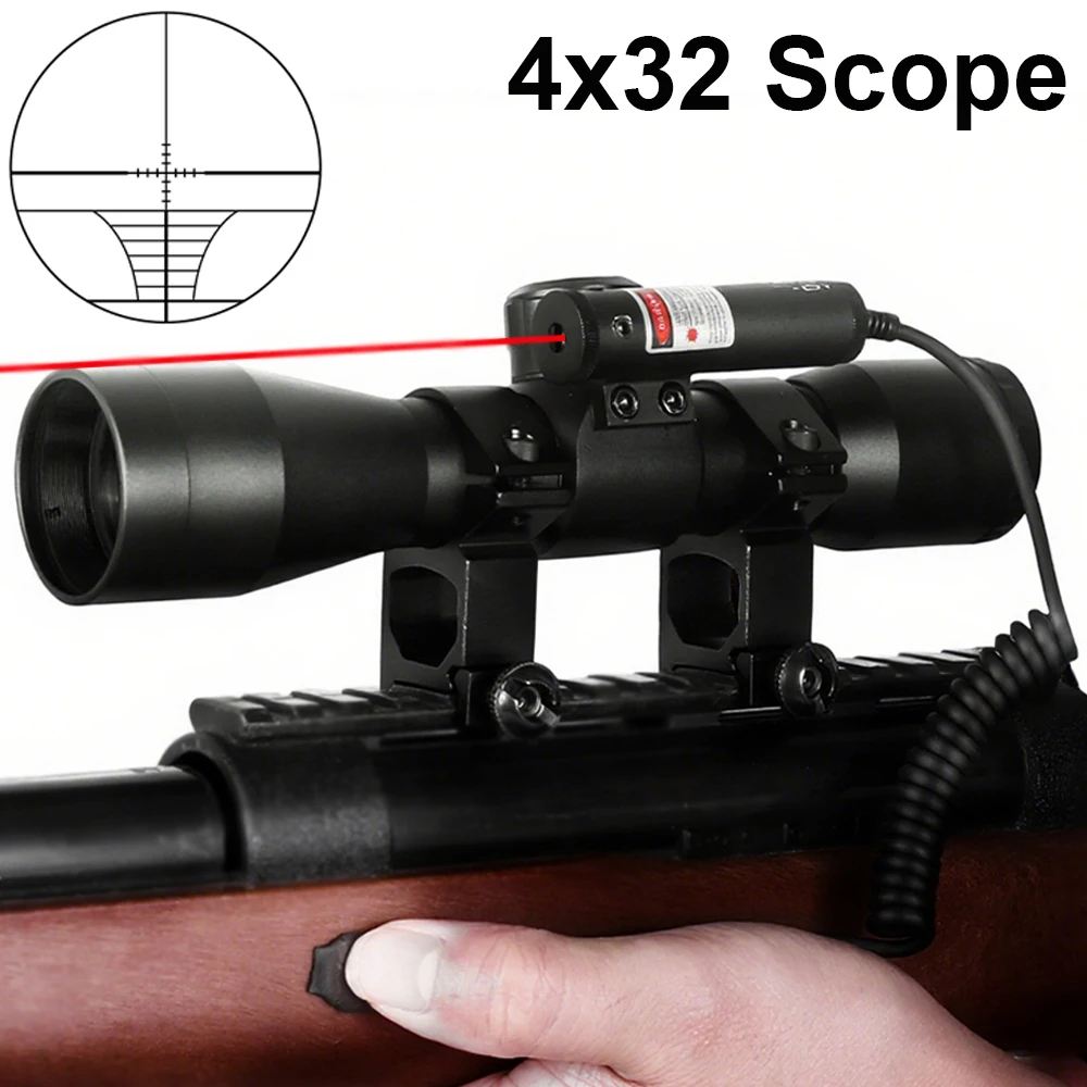 - Escopos de rifle de aire 4x32 con dioptrías de bloqueo, el largo alcance le brindan la máxima claridad. Valor de viento y elevación del clic: 1/4 MOA 1/4" a 100 yardas.