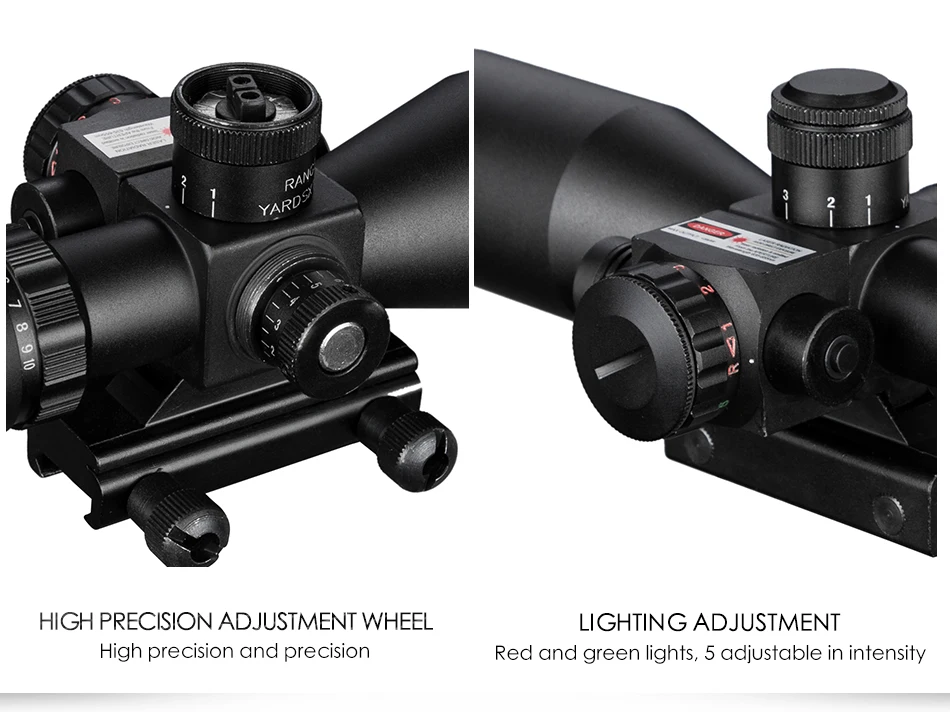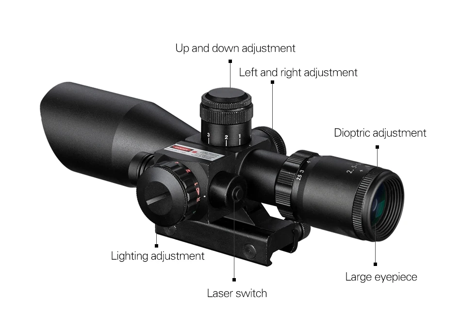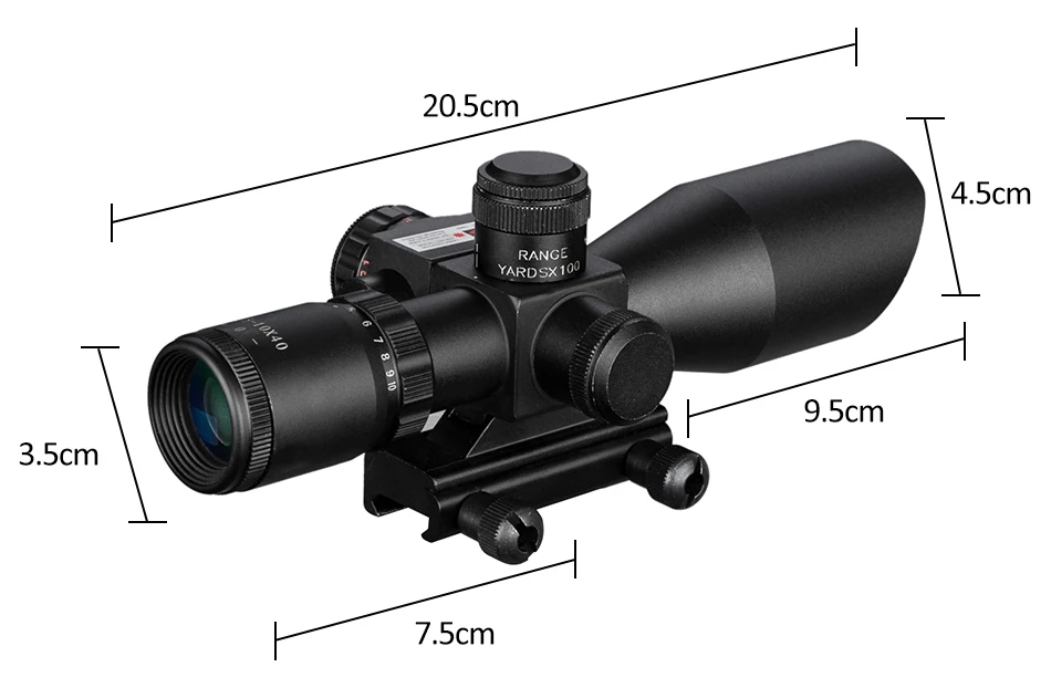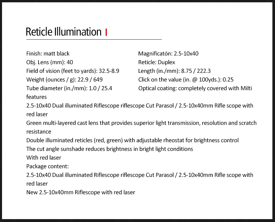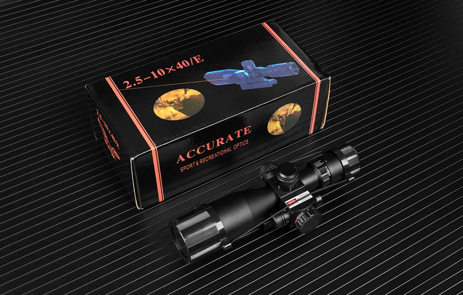 Mira telescópica biselada táctica iluminada 2,5-10X40 con mira telescópica de caza láser cruzada Mil Dot verde rojo