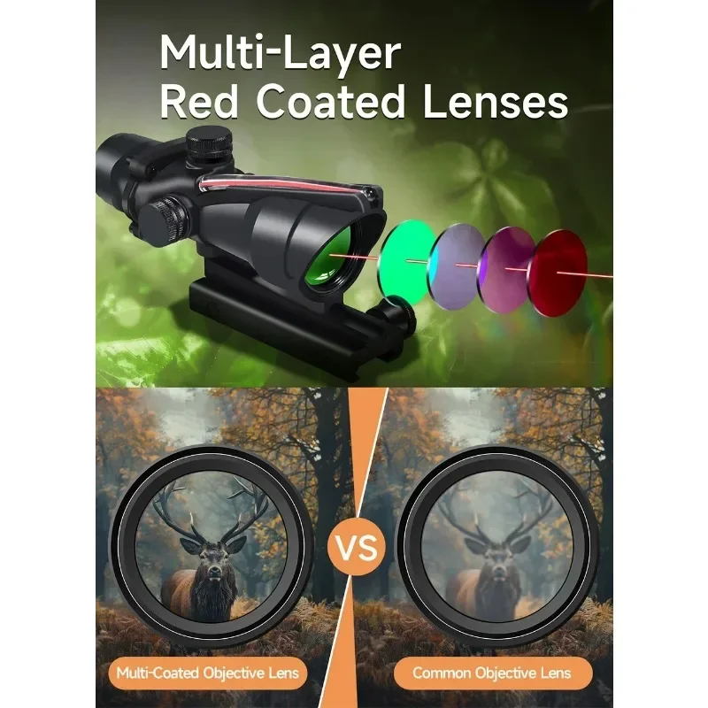 -[ÓPTICOS DE FIBRA REAL] El alcance de punto rojo de fibra real 4x32, lo que lo convierte en una mira ideal para apuntar rápido y disparar con precisión.- [IMPERMEABLE, A PRUEBA DE CHOQUES, A PRUEBA DE NIEBLA Y A PRUEBA DE VIENTO] Construido para soportar condiciones climáticas adversas y retroceso extremo, este alcance es perfecto para la caza y el tiro táctico.- [DURADERO] La carcasa de aluminio forjado y la fundición totalmente de metal con tratamiento superficial de caucho negro mate garantizan durabilidad y longevidad.- [SOSTENCIÓN CERO] La estructura de aluminio indestructible garantiza una sujeción cero bajo el retroceso más fuerte.- [ALTA MAGNIFICACIÓN] El aumento de 4x y la lente del objetivo de 32 mm proporcionan imágenes claras y brillantes incluso en condiciones de poca luz.ILUMINACIÓN 4X32 SIN BATERÍAS: Cuenta con una retícula iluminada con tritio/fibra óptica que ajusta automáticamente el brillo según la luz disponibleUna combinación de puntería rápida y precisa.El foco de este visor como actualización es la adición de un campo de visión dual y una mira de punto rojo en la parte superior para apuntar rápidamente.Puntería de punto rojo X1Puntería de precisión 4x32 X1Recubrimiento antideslumbrante multicapa para prevenir eficazmente el deslumbramiento.