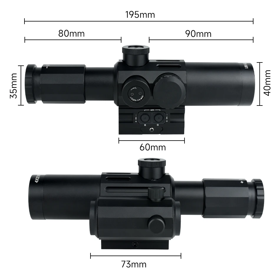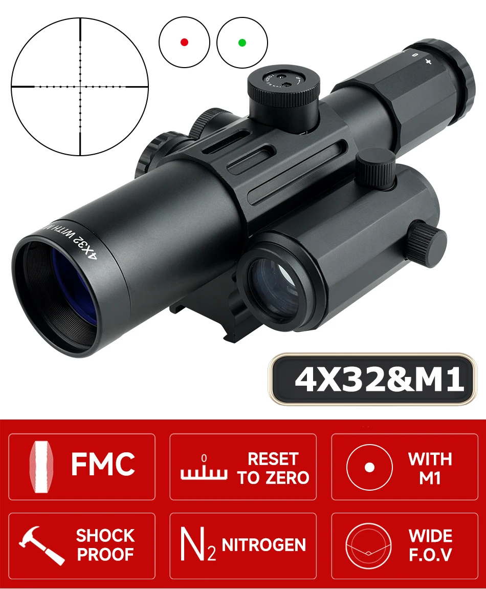 Mira multifuncional de soporte corto, mira óptica 4x32 y mira de punto rojo 1x20, estructura integrada