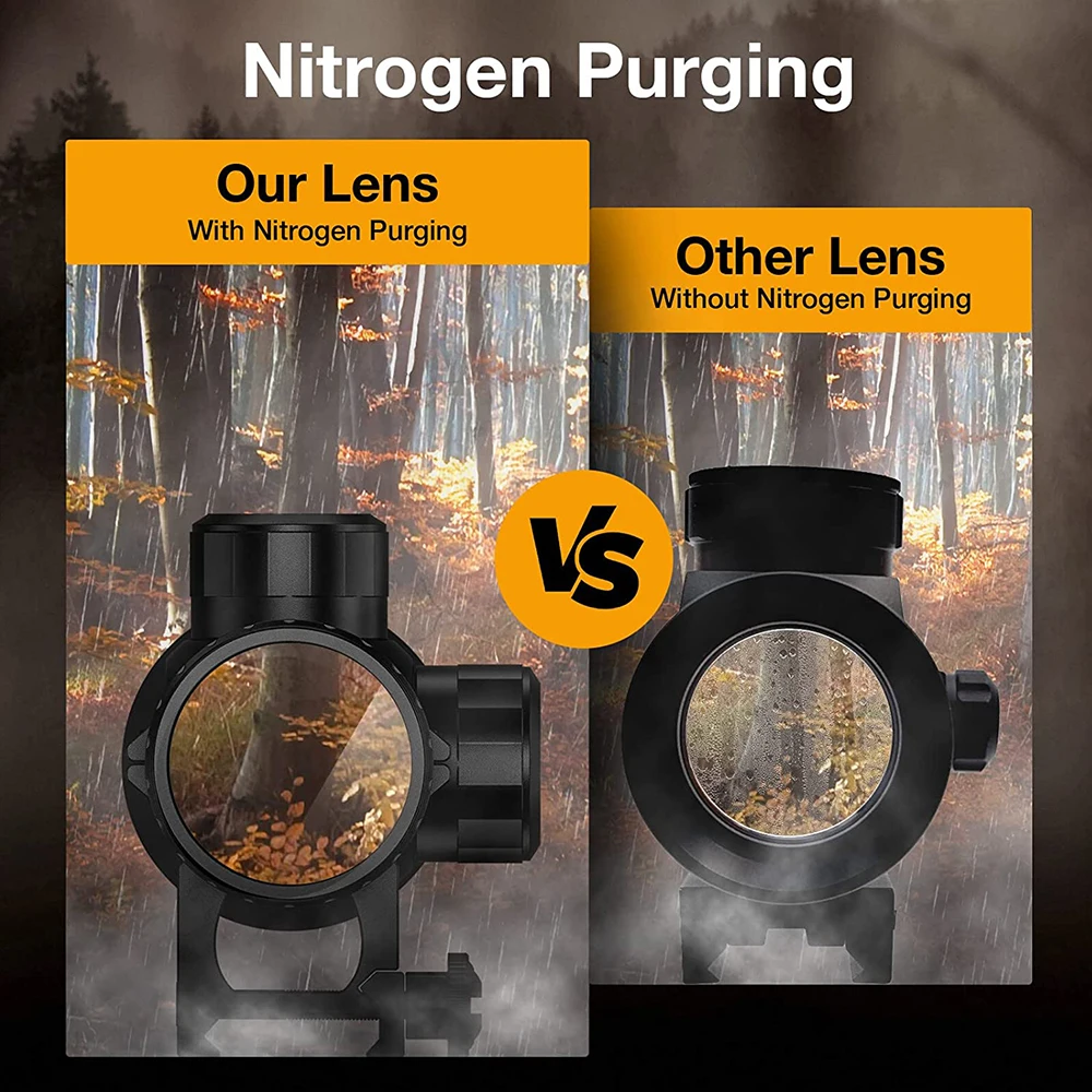- El cuerpo del visor del rifle está hecho de aleación de aluminio de grado aeronáutico, más resistente a los impactos, duradero y liviano, el retícula lleno de nitrógeno garantiza un excelente rendimiento a prueba de agua y niebla.