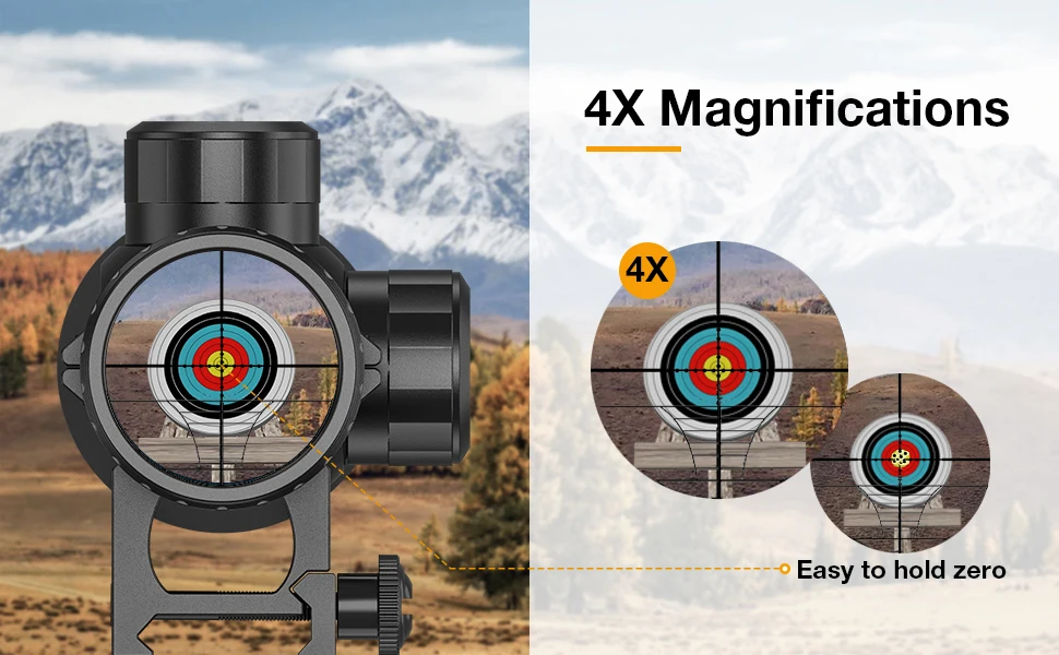 - Con retículas de malla/óptica cruzada, lente de objeto de aumento de 4x, 32 mm con lentes multicapa de rendimiento HD, equipadas con un ocular superior, los visores de rifle de largo alcance le brindan la máxima claridad y un ocular superior garantizado.
