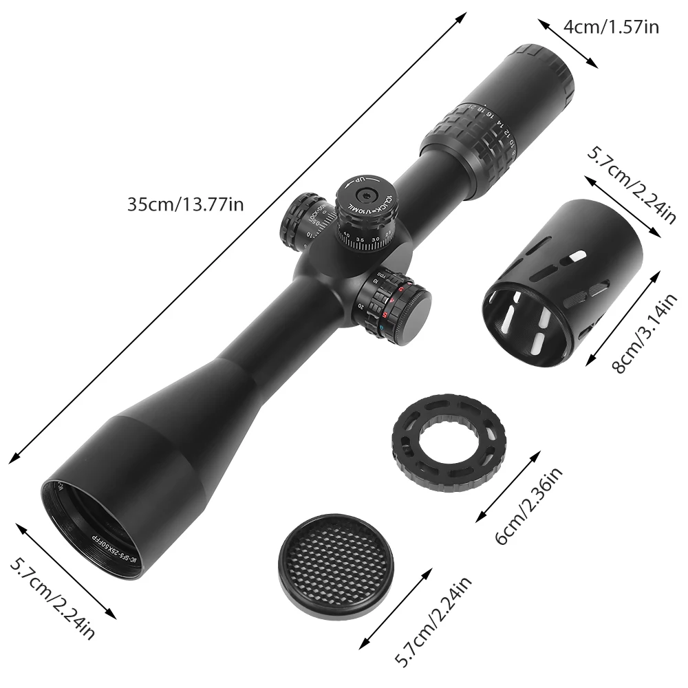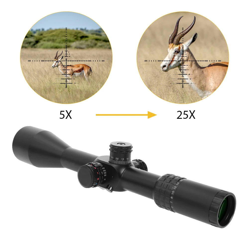 5-25X50 FFP Alcance Primer plano focal Visores de rifle Verde y Rojo Iluminado 30mm Monotubo Caza Visores ópticos para carabina Neumática