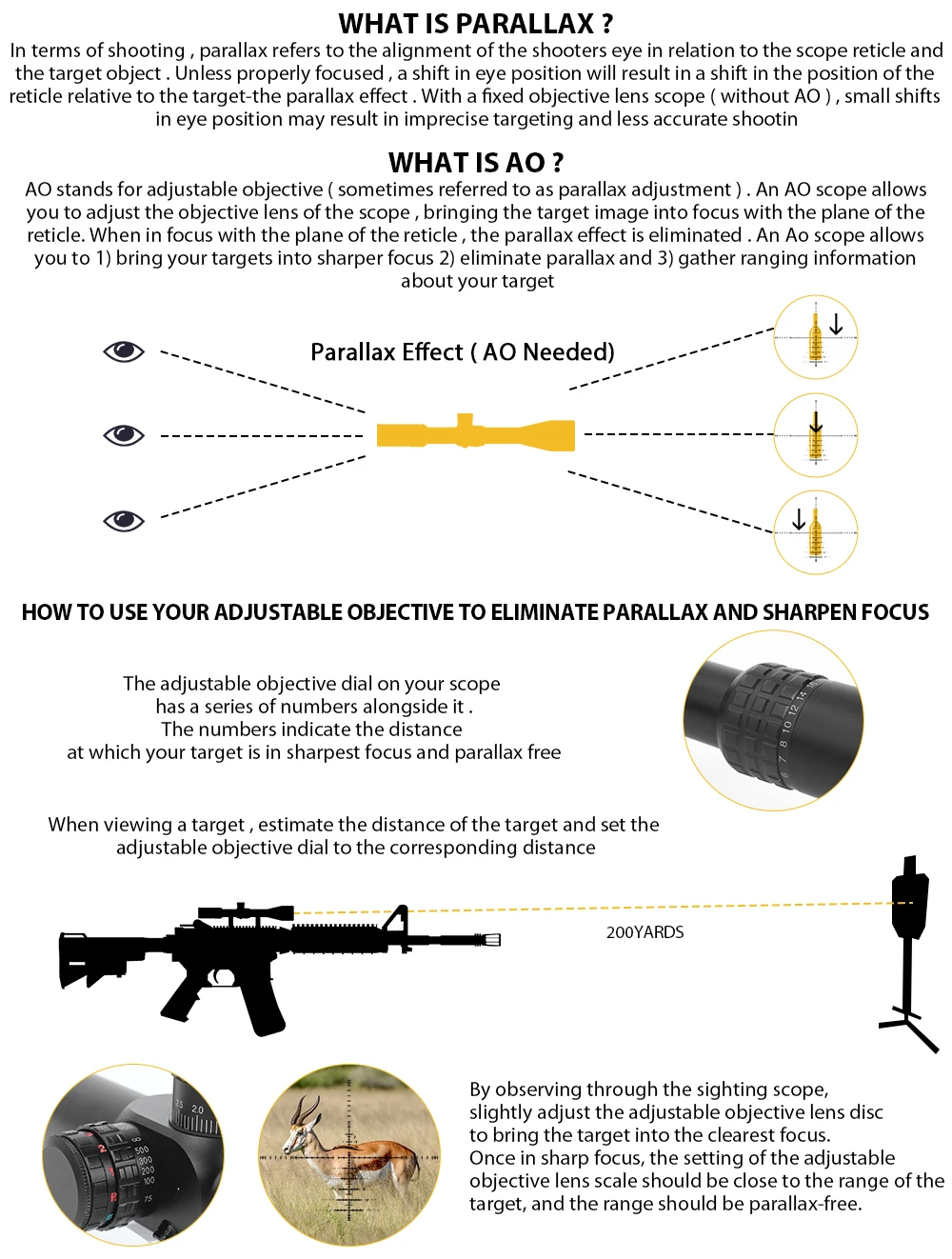 -El ajuste final del enfoque debe verificarse moviendo la cabeza hacia adelante y hacia atrás mientras se mira a través del visor para cualquier cambio de la retícula en el objetivo (paralaje).