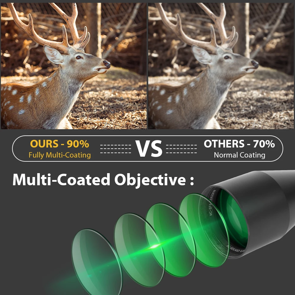 -Las lentes completamente multicapa proporcionan una transmisión de luz superior para una claridad excepcional y un rendimiento con poca luz.