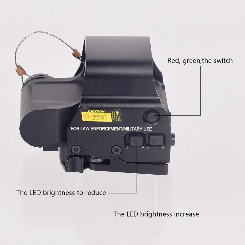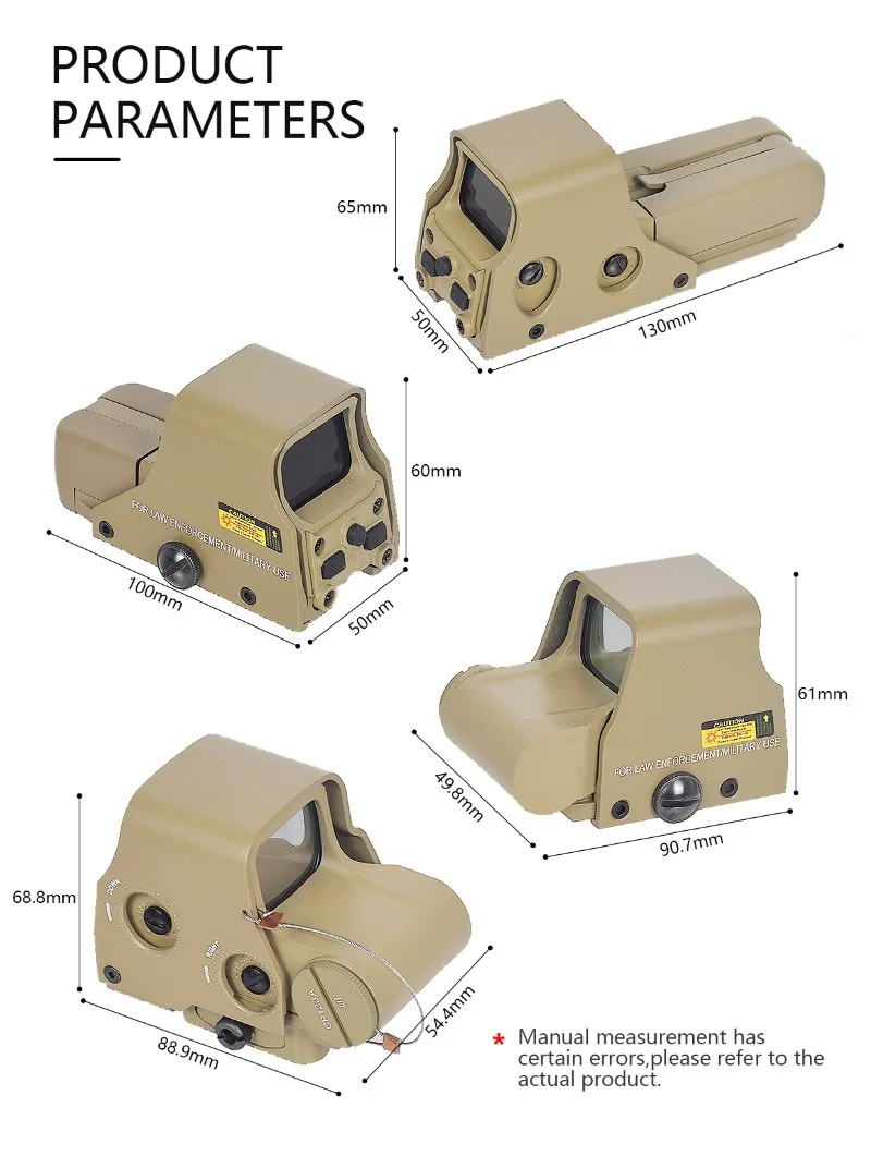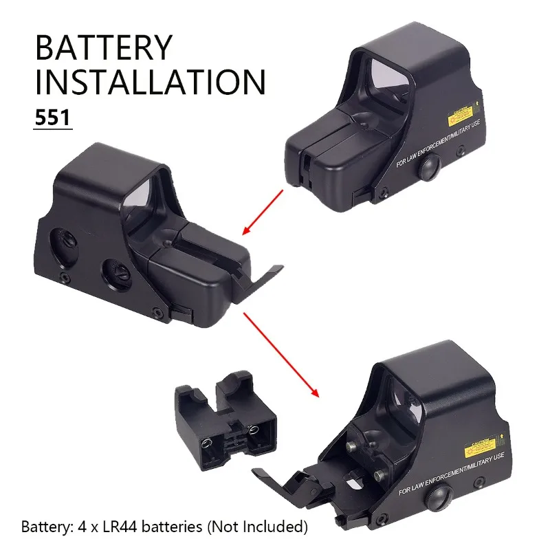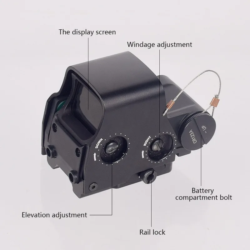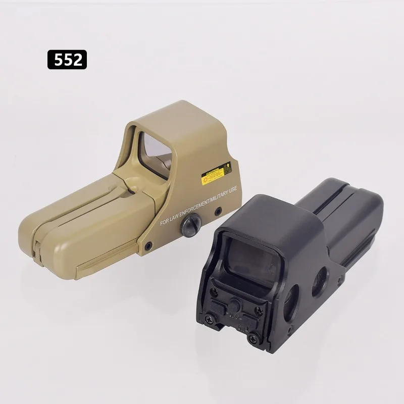 Material: aleación de aluminio 551 Características -Función de seguridad de energía, apagado automático en 2 horas -Fácil de configurar, se adapta a cualquier riel de 20 mm/0,79 pulgadas de riel. -Ajuste de elevación y apalancamiento en el lateral de la mira. -Color: negro/bronceado -Dimensión: 10 cm (largo) x 5 cm (ancho) x 6 cm (alto) -Acerca del peso: 390 g -A: ajuste de brillo (hacia arriba) -B: ajuste de brillo (hacia abajo) -C: Cambio de color de retícula (rojo/verde) 552 Características Ampliación: 1,0x Diámetro de la lente del objetivo: 30x22 mm Longitud: 130x50x65mm Peso (neto): 275 g (9,7 onzas) Alivio ocular: Gratis Campo de visión (100 yardas): 30 yardas Recubrimiento óptico: multicapa Retícula: Retícula roja y verde con 5 niveles de brillo Rango de evaluación: MOA Rango de deriva: MOA Función 1/2 M.O. Un viento y elevación con clics audibles Tipo de batería: dos piezas de batería AA (no incluidas) 553 Características Nombre: 553 mira Pupila de salida: 8MM F.O.V.:146,3-34,2 pies 100 yardas Alivio ocular: ilimitado Recubrimiento óptico: multicapa Ajuste: viento y elevación 0,5MOA Potencia máxima de salida: W, 1mw Fuente de alimentación: 1 pieza CR123A 3V o 1 litio CR20323V (no incluida)