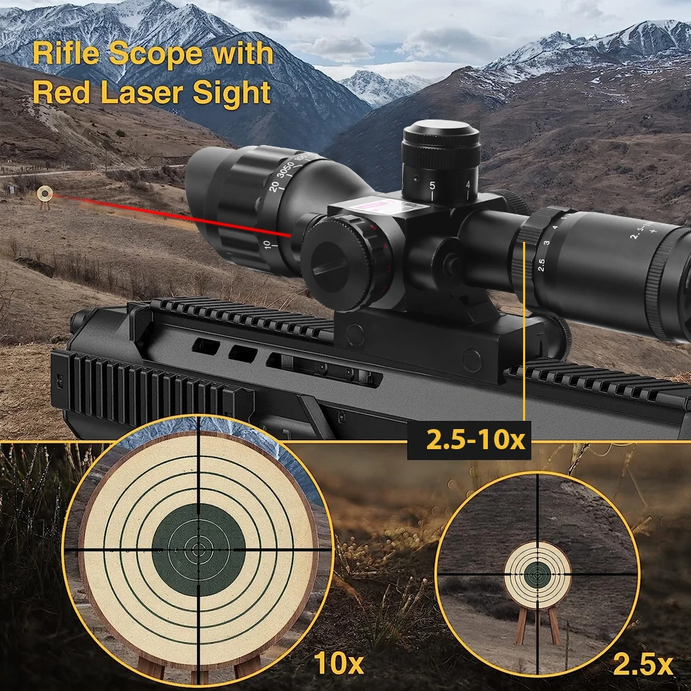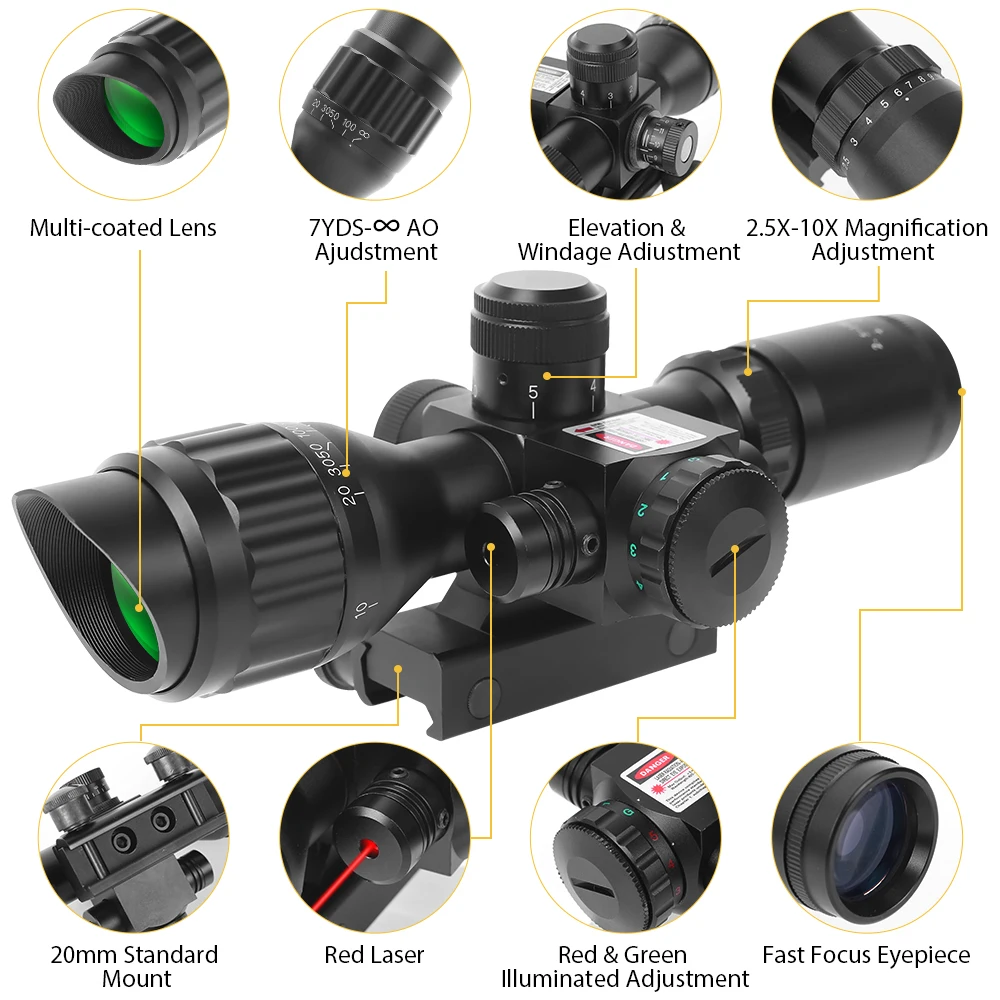Ampliación: 2,5-10X, diámetro del Objetivo: 50mm, adecuado para disparos de corto a medio alcance o largo alcance.