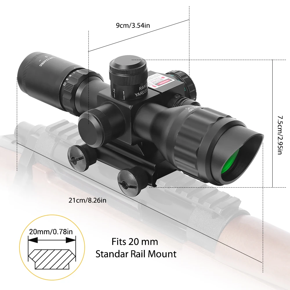 Visores para rifles, objetivo objeto de 32mm con lentes multicapa de rendimiento HD, aumenta la transmisión de luz con múltiples recubrimientos antirreflectantes en todas las superficies de aire a vidrio. (El vidrio completamente multicapa proporciona una buena transmisión de luz que otros)